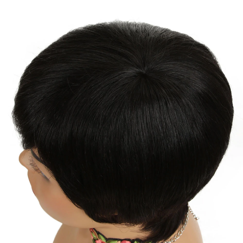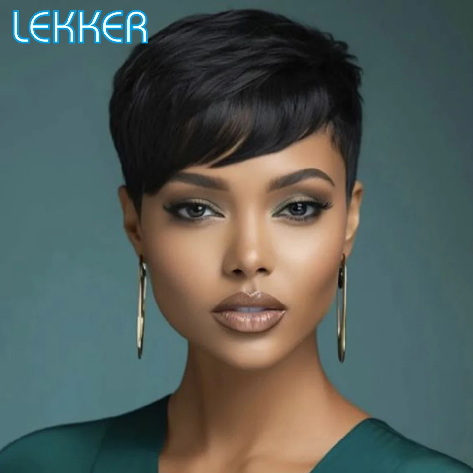 Lekker Clearance Short Pixie Cut Straight Bob 100% Human Hair Wig With Bangs For Women Brazilian Remy Hair Nature Daily Wigs
