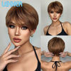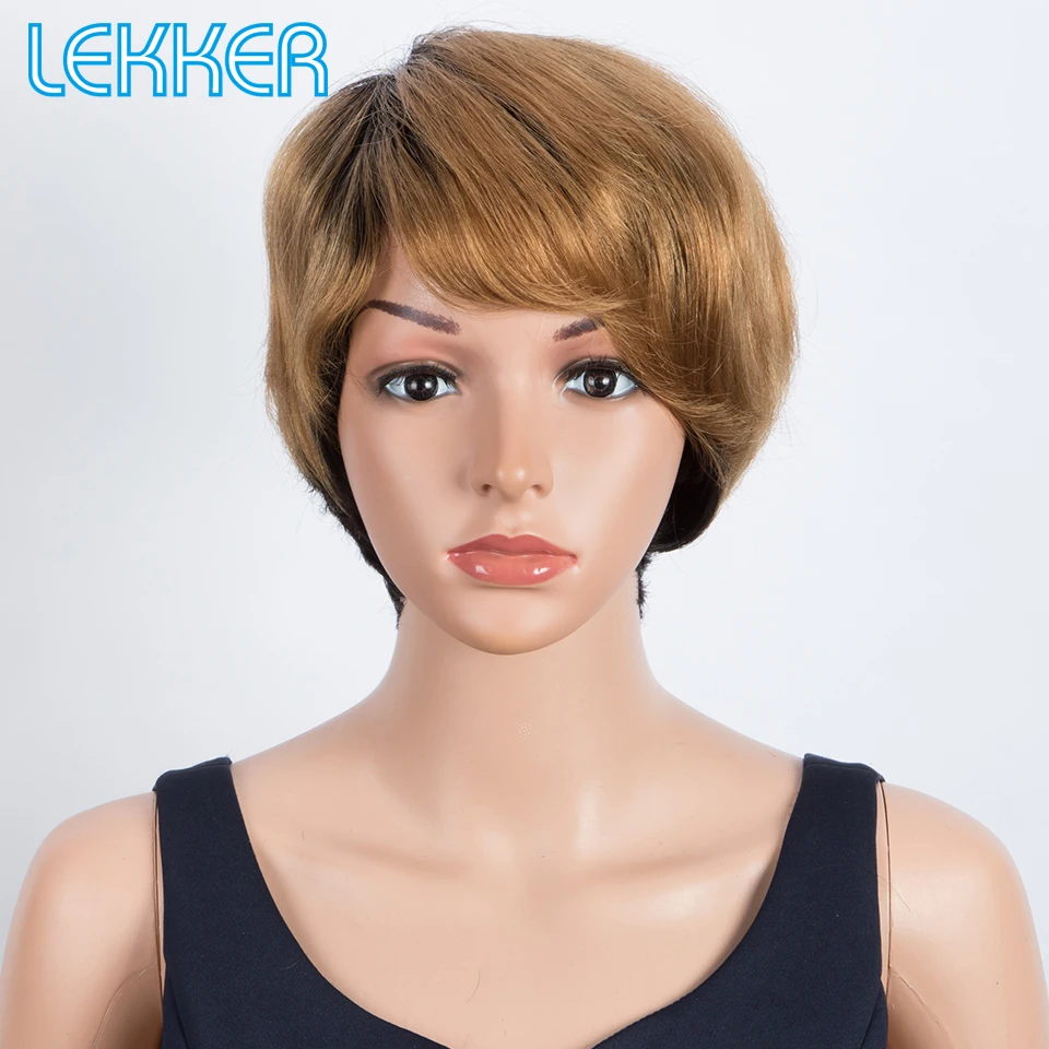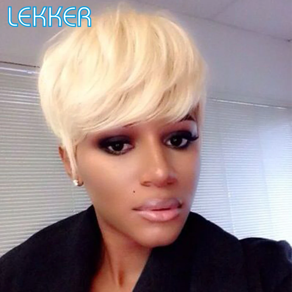 Lekker Highlight Gold Blonde Short Pixie Cut Human Hair Wigs For Women Glueless Brazilian Remy Hair Colored Full Machine Wigs