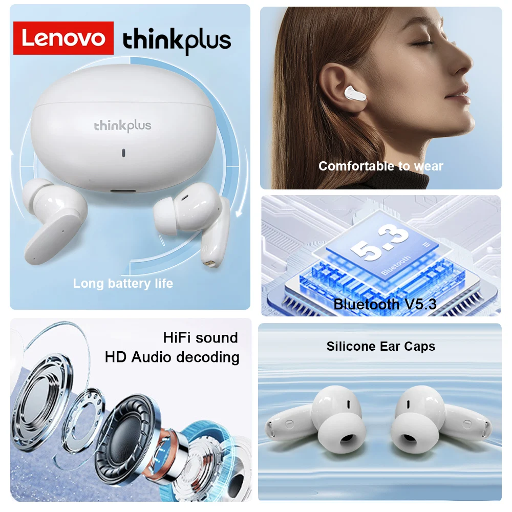 Lenovo thinkplus AI Translation Wireless Bluetooth Earphones HiFi Stereo Headphones Ear Buds With Mic Deep Bass Gaming Earbuds