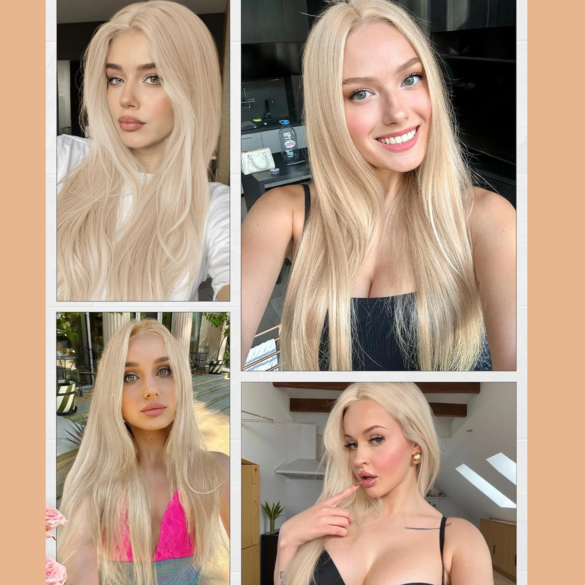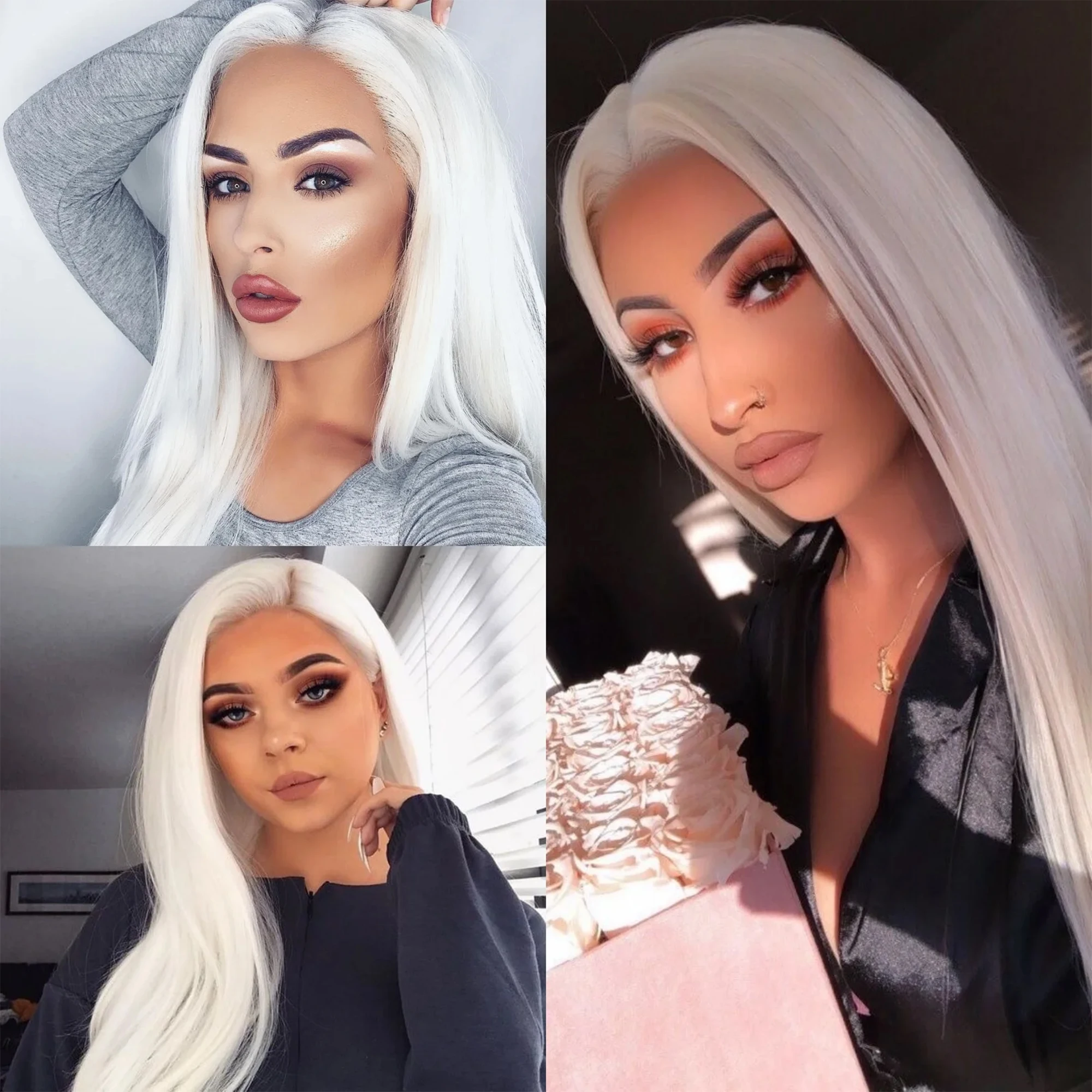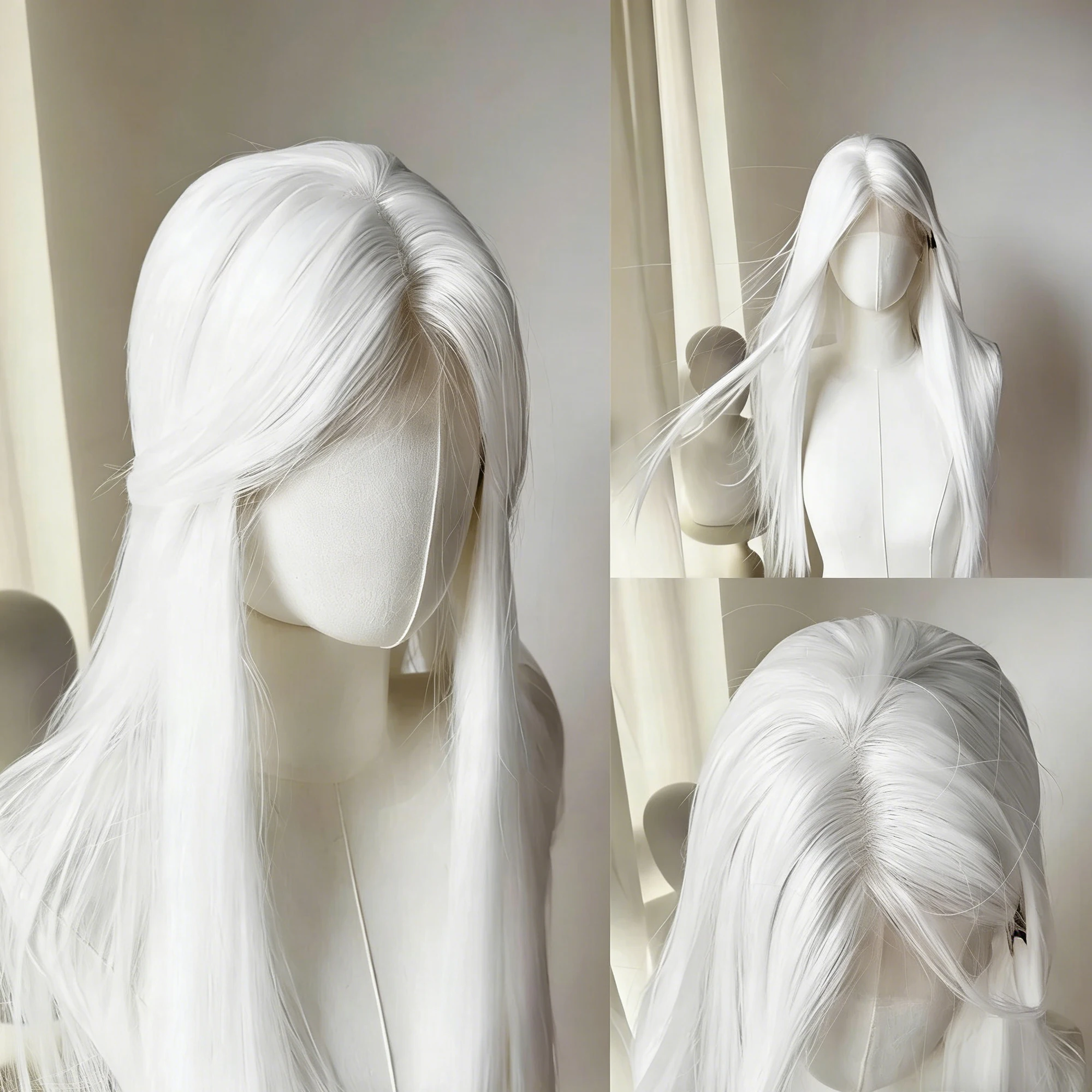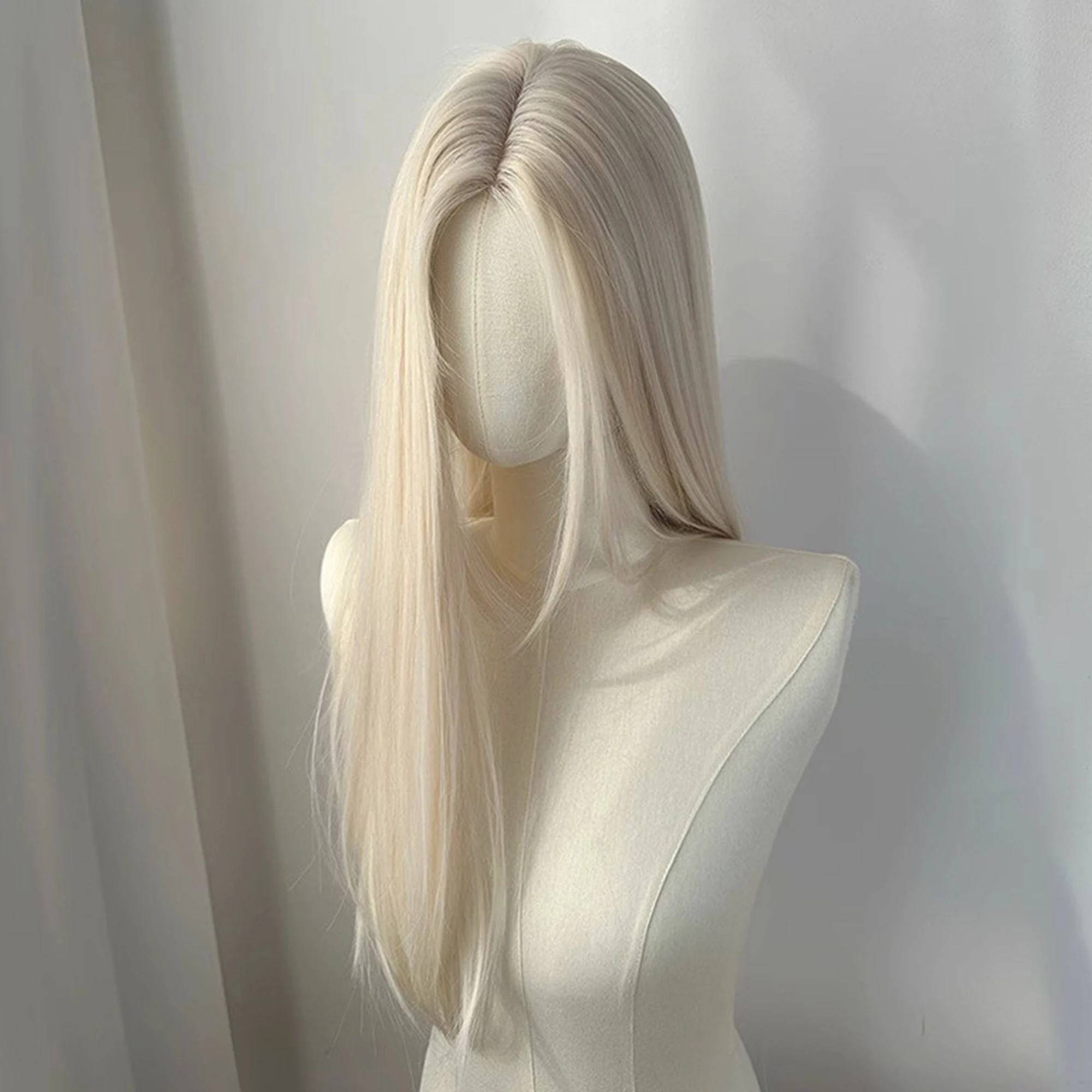 Light Blonde Wig 28inch Wig Long Straight Synthetic Wigs High temperature Fibers for Cosplay Moonlight White
