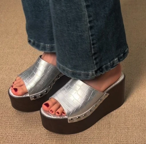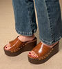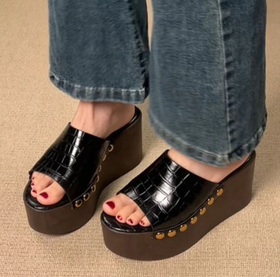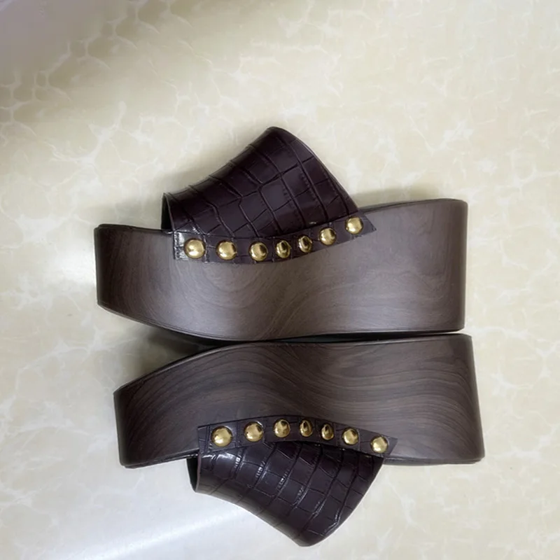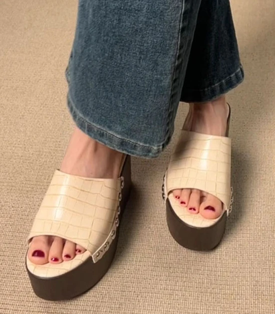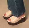 LIHUAMAO wood grain Wedges Sandals Shoes for Women High Heels Shoes Ankle Strap modern Sandals Platform Casual comfort