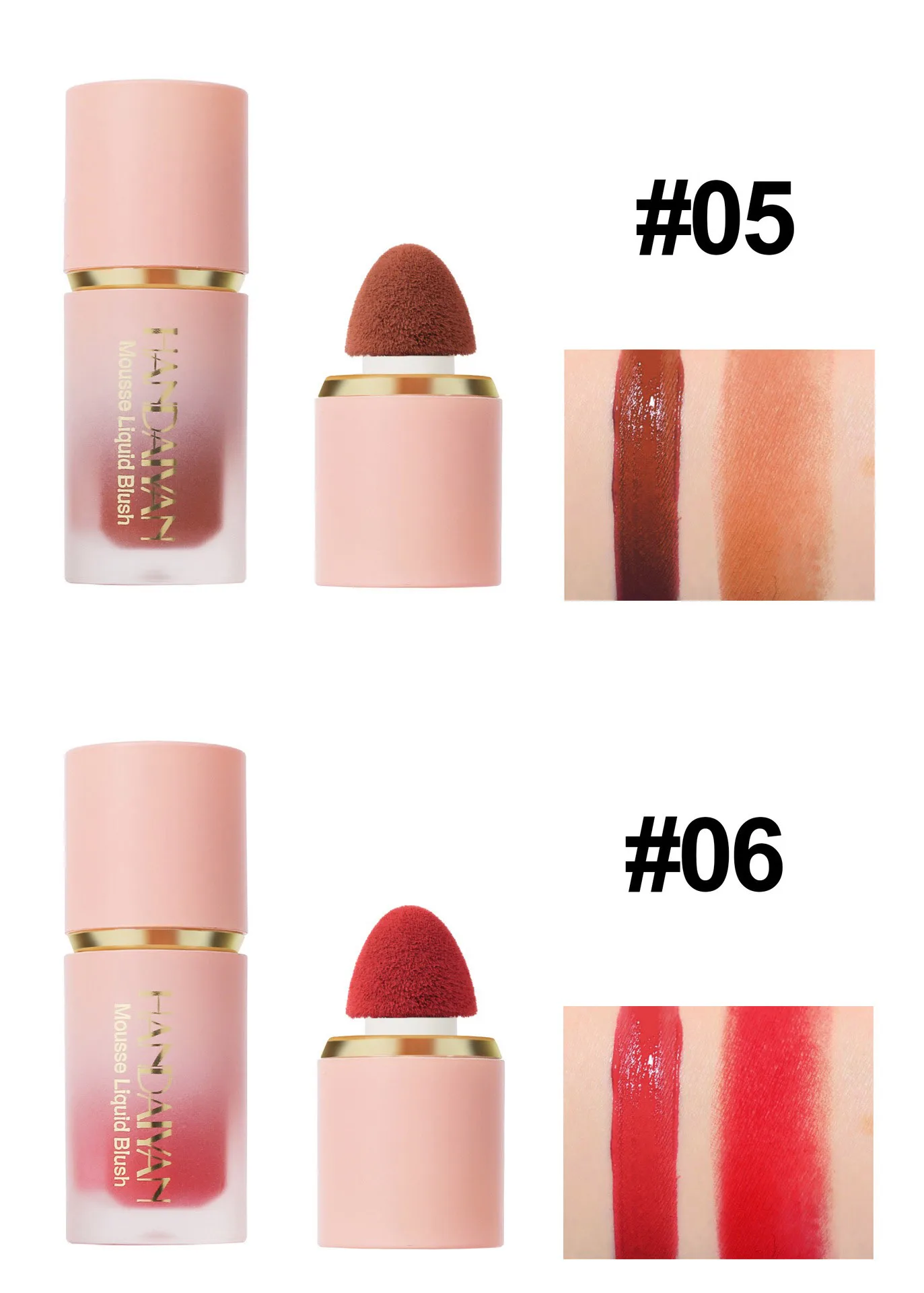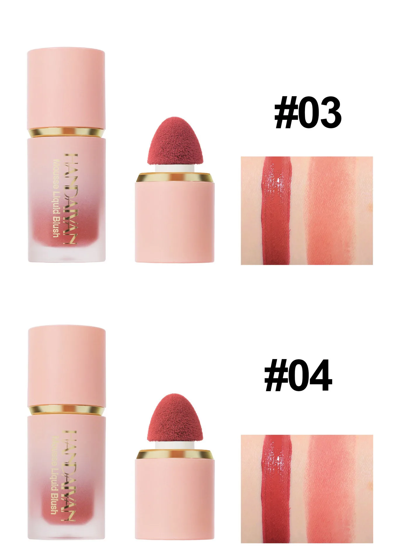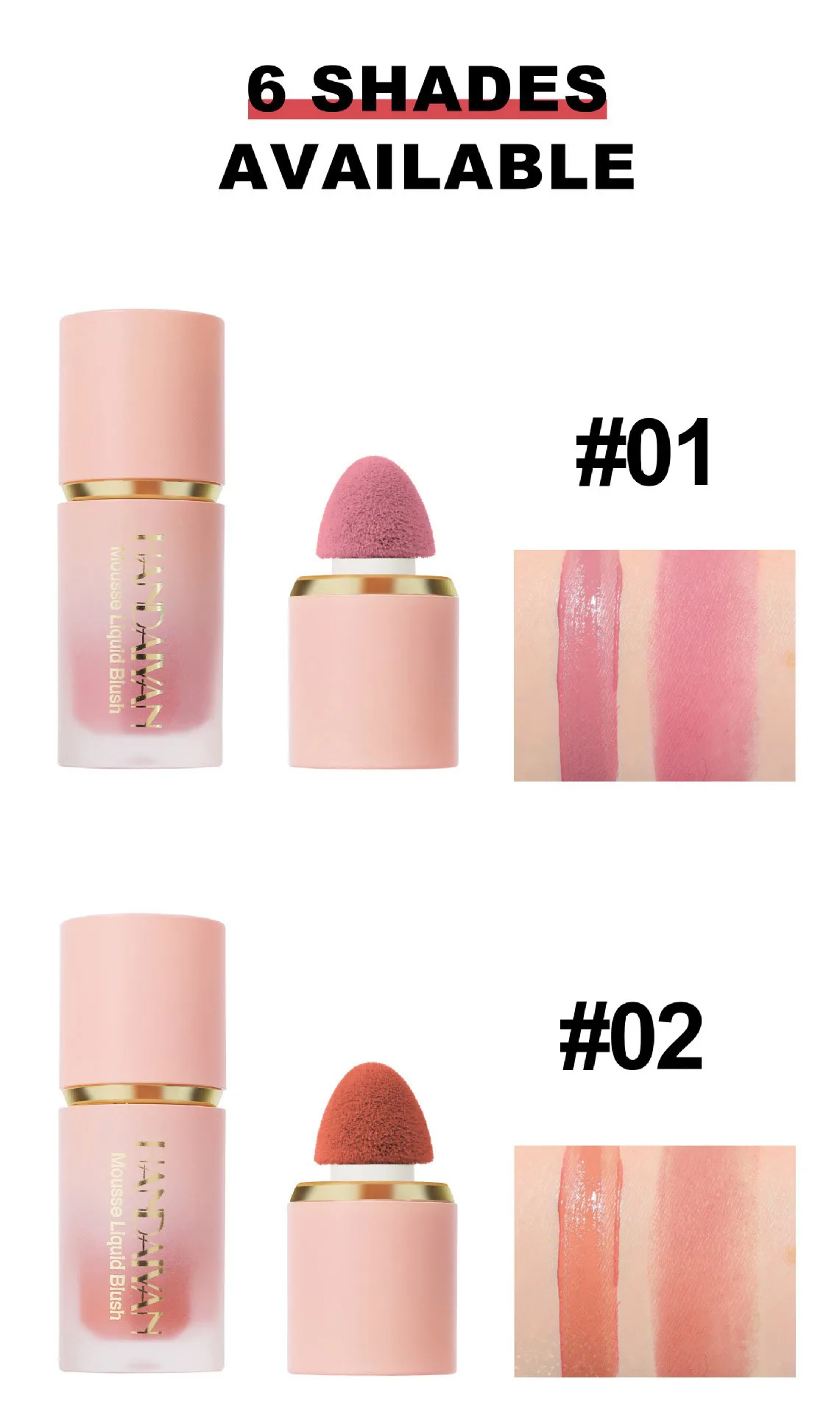 [Easy to Apply]: Liquid powder blusher is easy to wear, just tap your cheeks with a sponge head.