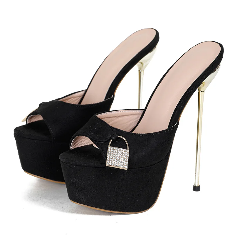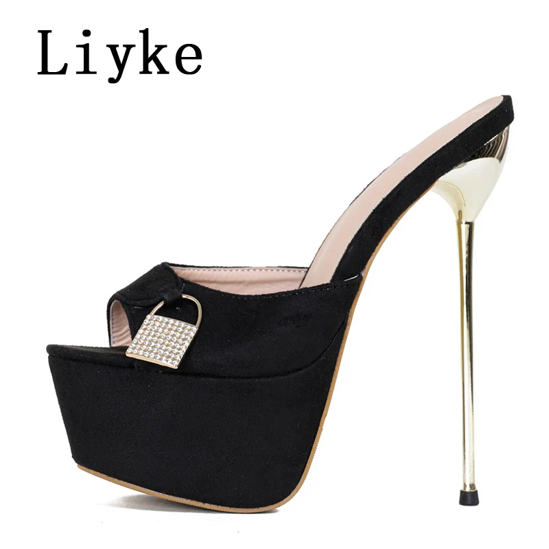 Liyke Summer Fashion Metal Extreme Platform Slippers Women Sexy Peep Toe Stiletto Heels Sandal Ladies Club Stripper Shoes Slider
