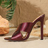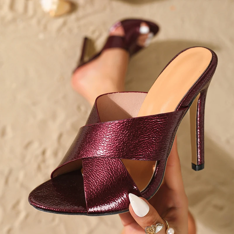 Liyke Wine Red Cross Strap Sexy Peep Toe Thin High Heels Modern Slippers Women Banquet Party Slides Shoes Sandal Female Mules