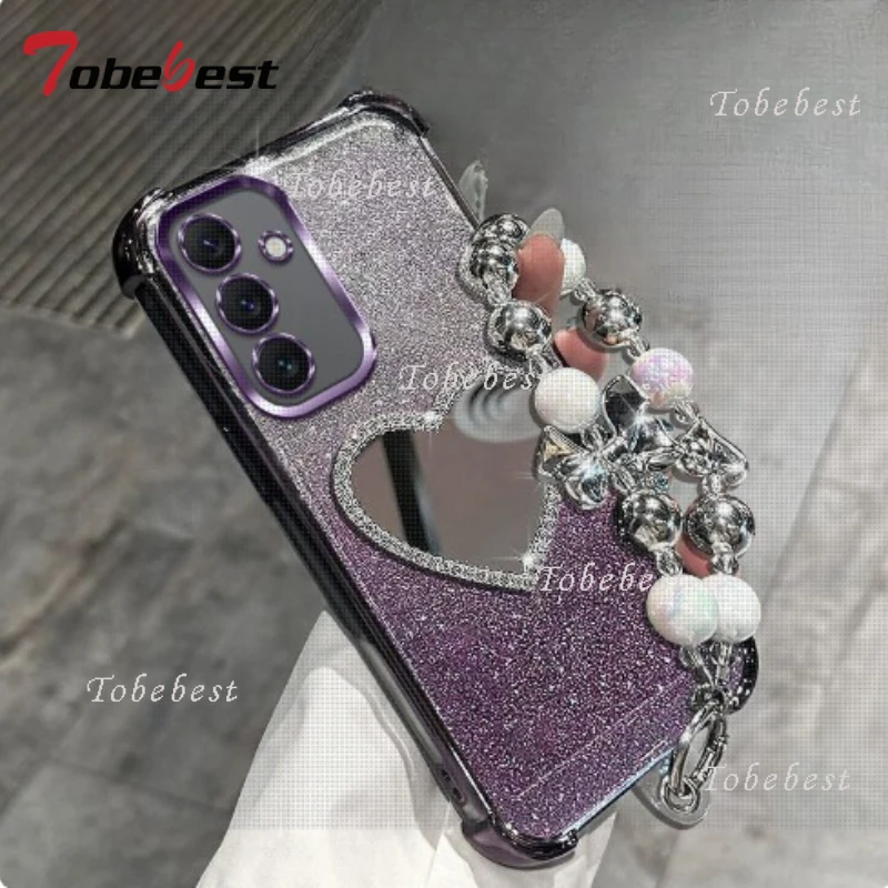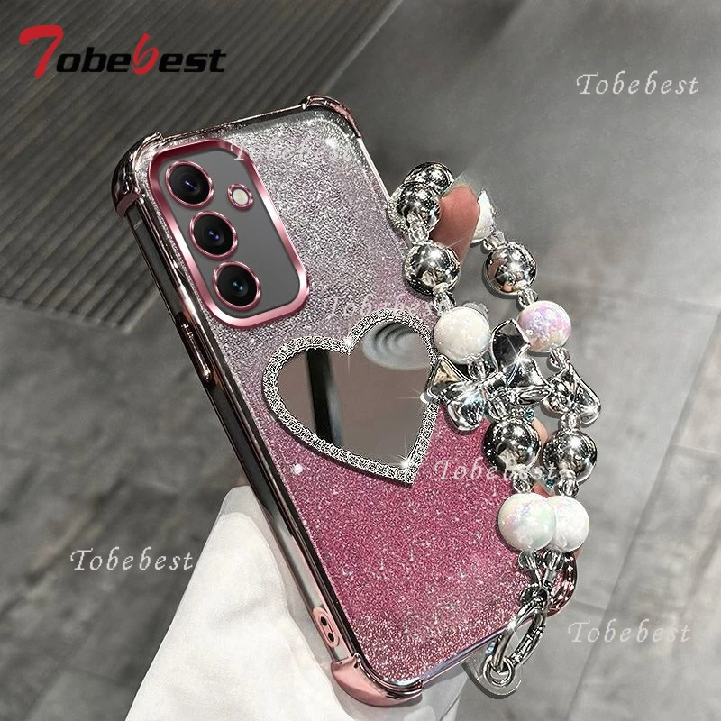 Love Mirror Bracelet Shockproof Plating Case for Samsung Galaxyu A17 A07 A16 A26 A36 A56 A06 A15 A25 A35 A55 A14 A24 A34 A54 5G