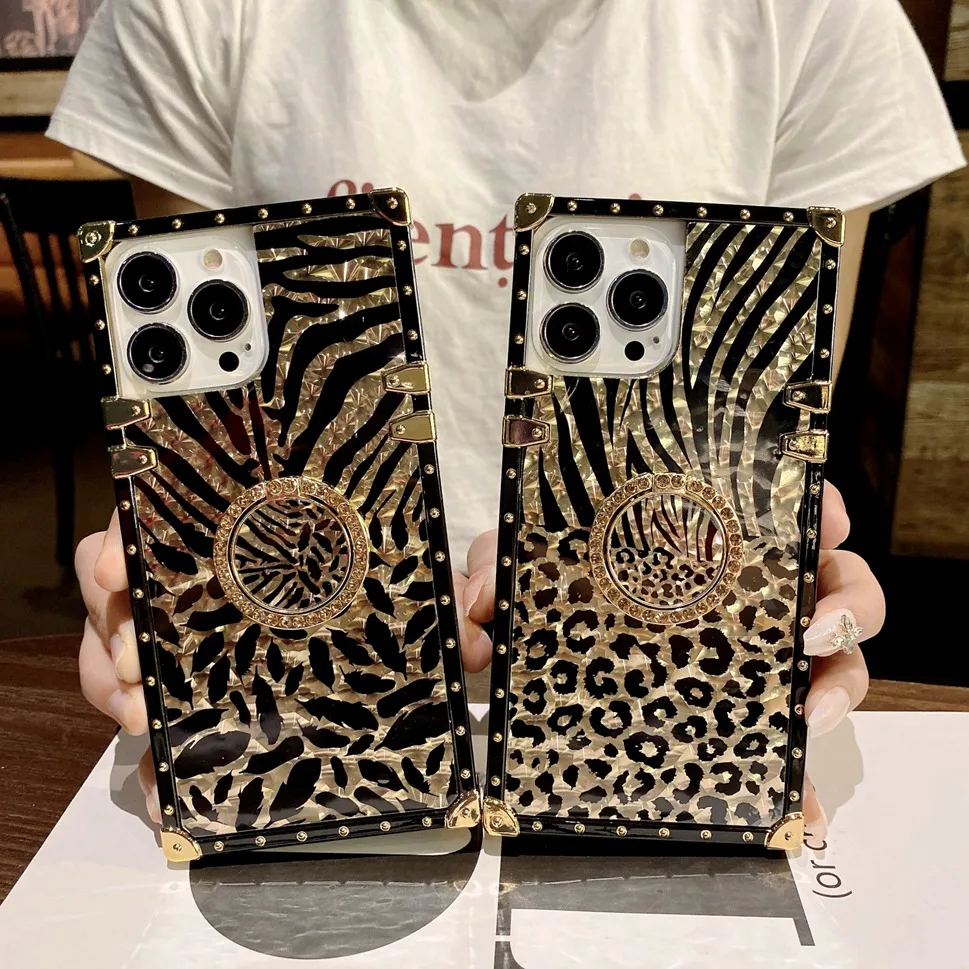 Luxury Glitter Leopard Phone Case for Samsung Galaxy S21 FE 5G S20 S22 Ultra S10 Plus S9 S8 A51 A22 A32 4G A52 Square Back Cover