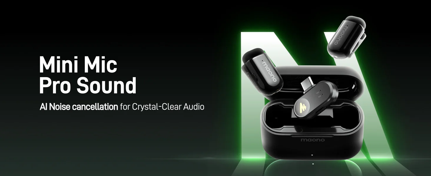 MAONO T1mini Wireless Lapel Microphone for Phone-Noise Cancellation Auto Clipping Function App Setting Audio Video Recording Mic