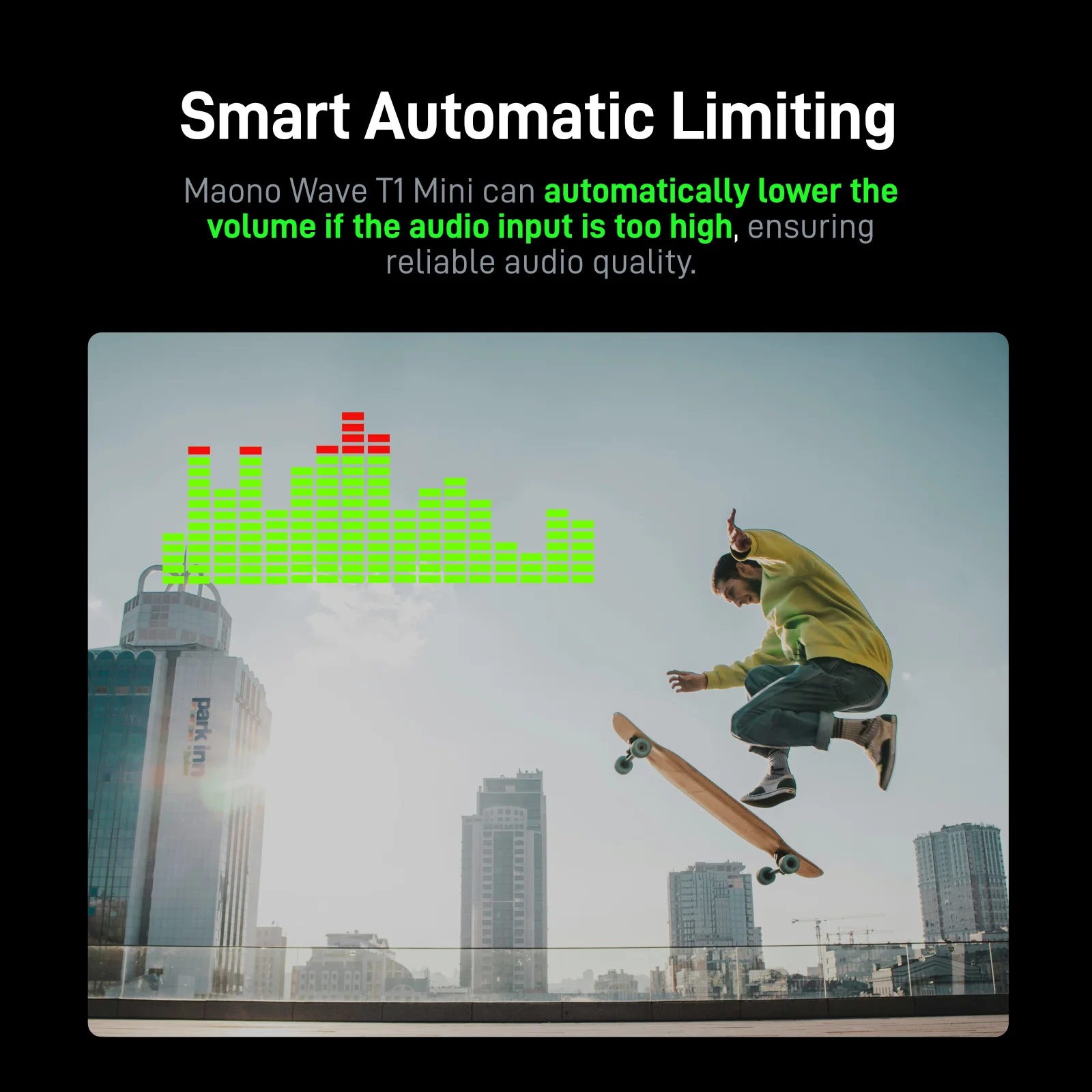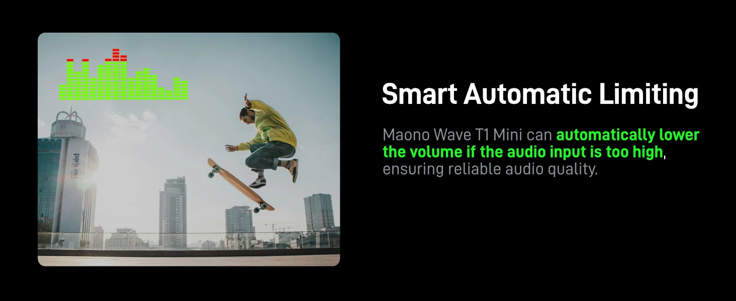T1 mini can automatically lower volume when the sound is too loud, preventing clipping and distortion.