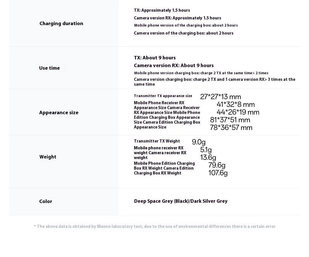 *The above data was obtained from Maono laboratory testing, and there may be some errors due to differences in usage environments
