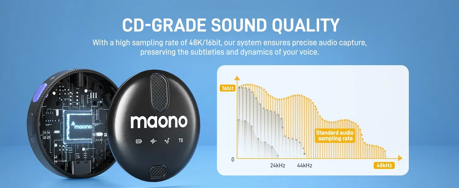 The Maono WM620 is a wireless Lavalier microphone that’s perfect for content creators on-the-go