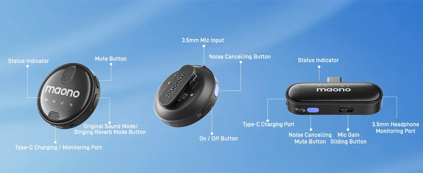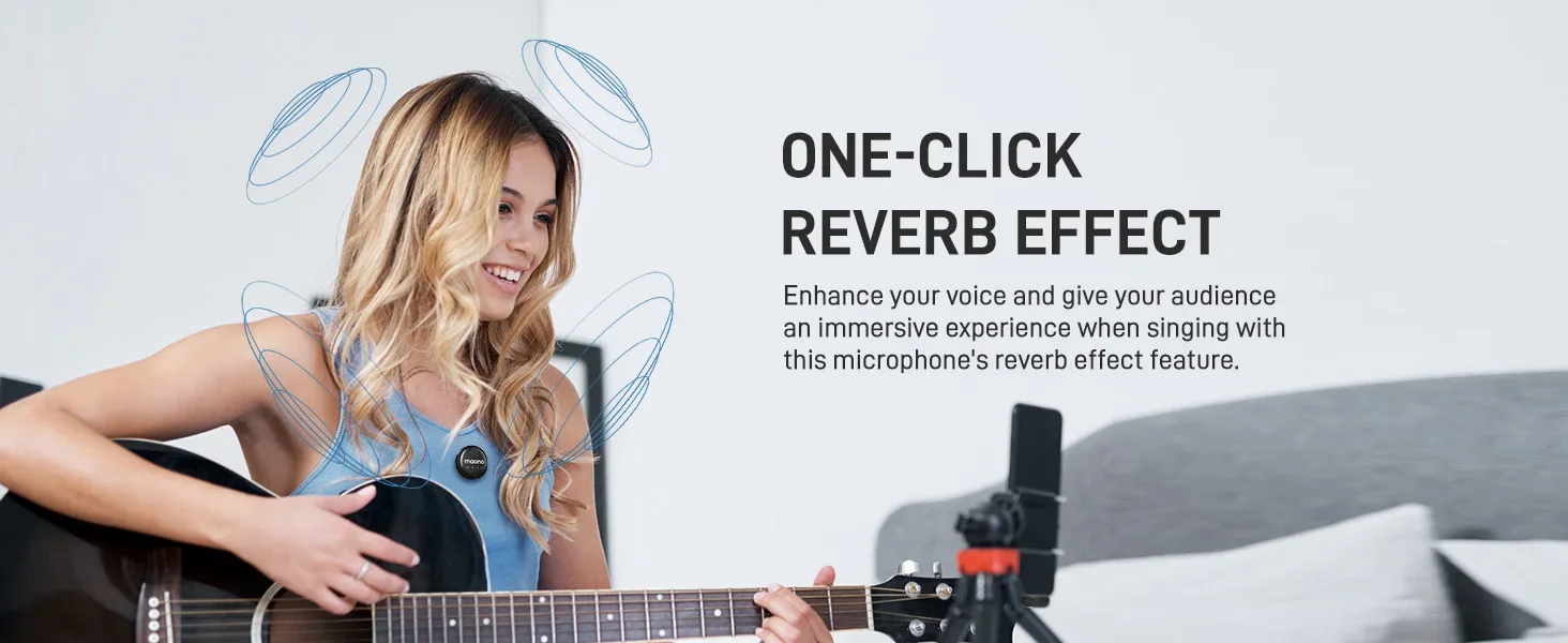 MAONO WM620 has powerful and complete functions, including four-level adjustment of microphone gain and transmitter monitoring function, which allows you to monitor your recorded content in real time. The receiver also has monitoring functions, ONE-CLICK MUTE, ONE-CLICK REVERB EFFECT, Improve your voice with just one click. Enhance the richness of sound
