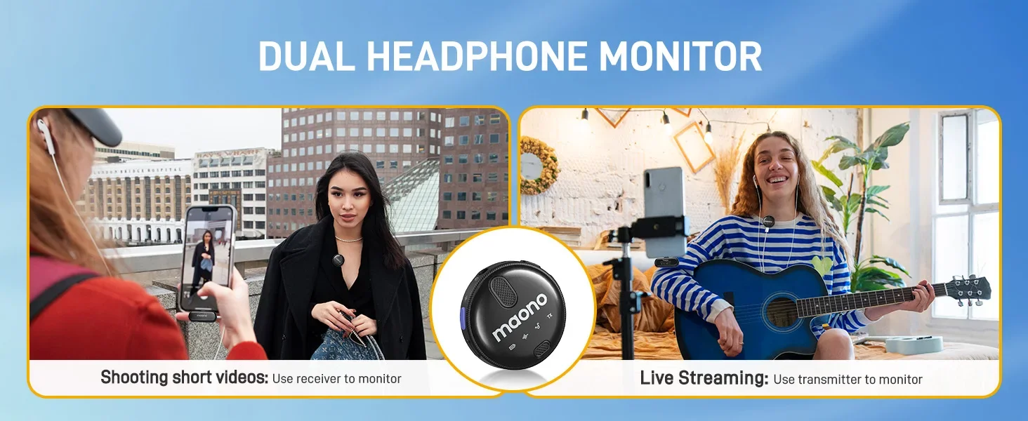 MAONO-Wireless Lavalier Microphone, Lapel Mic, Noise Reduction, Fit for iPhone 15,Android,USB C,TikTok,Streaming,Vlog, WM620 PC2