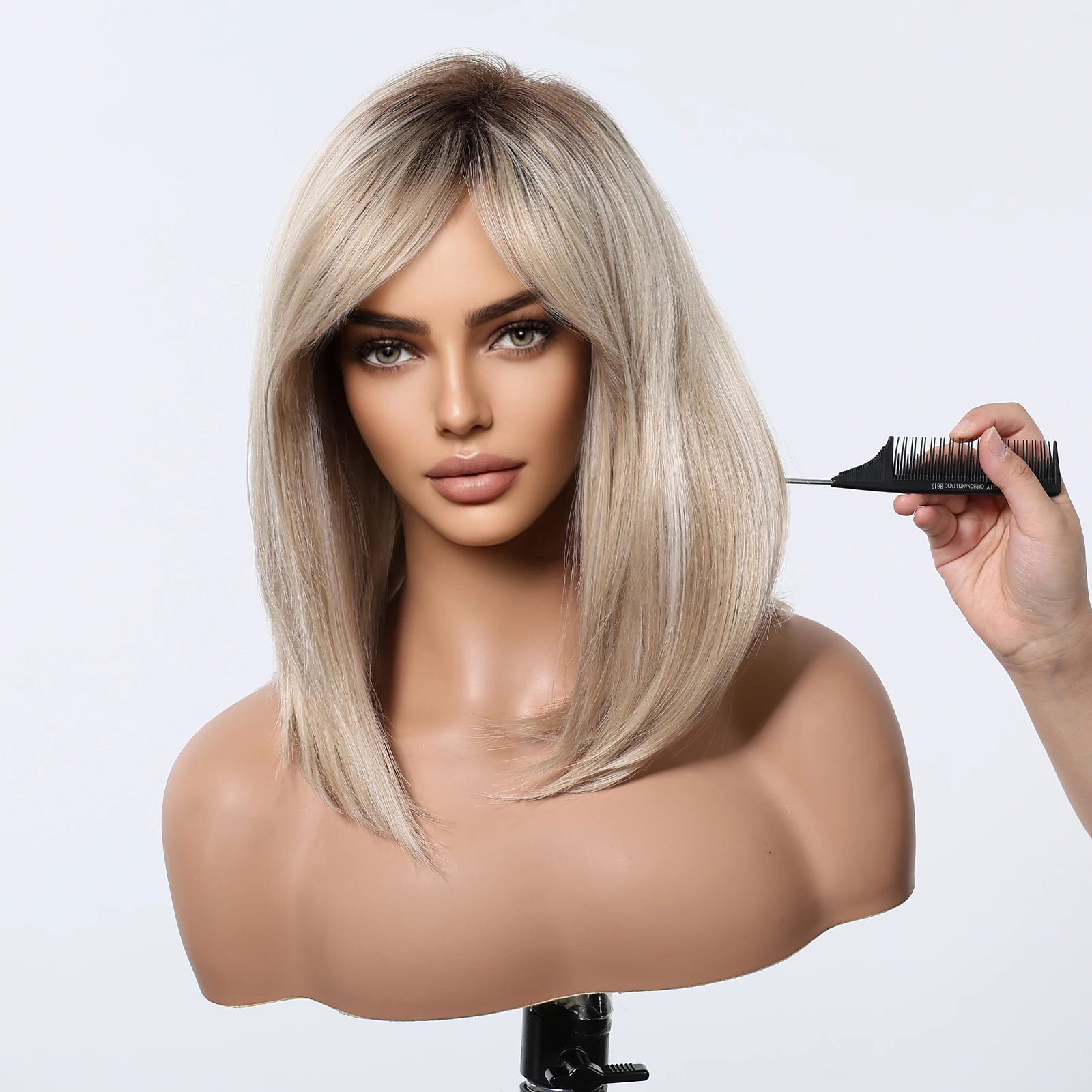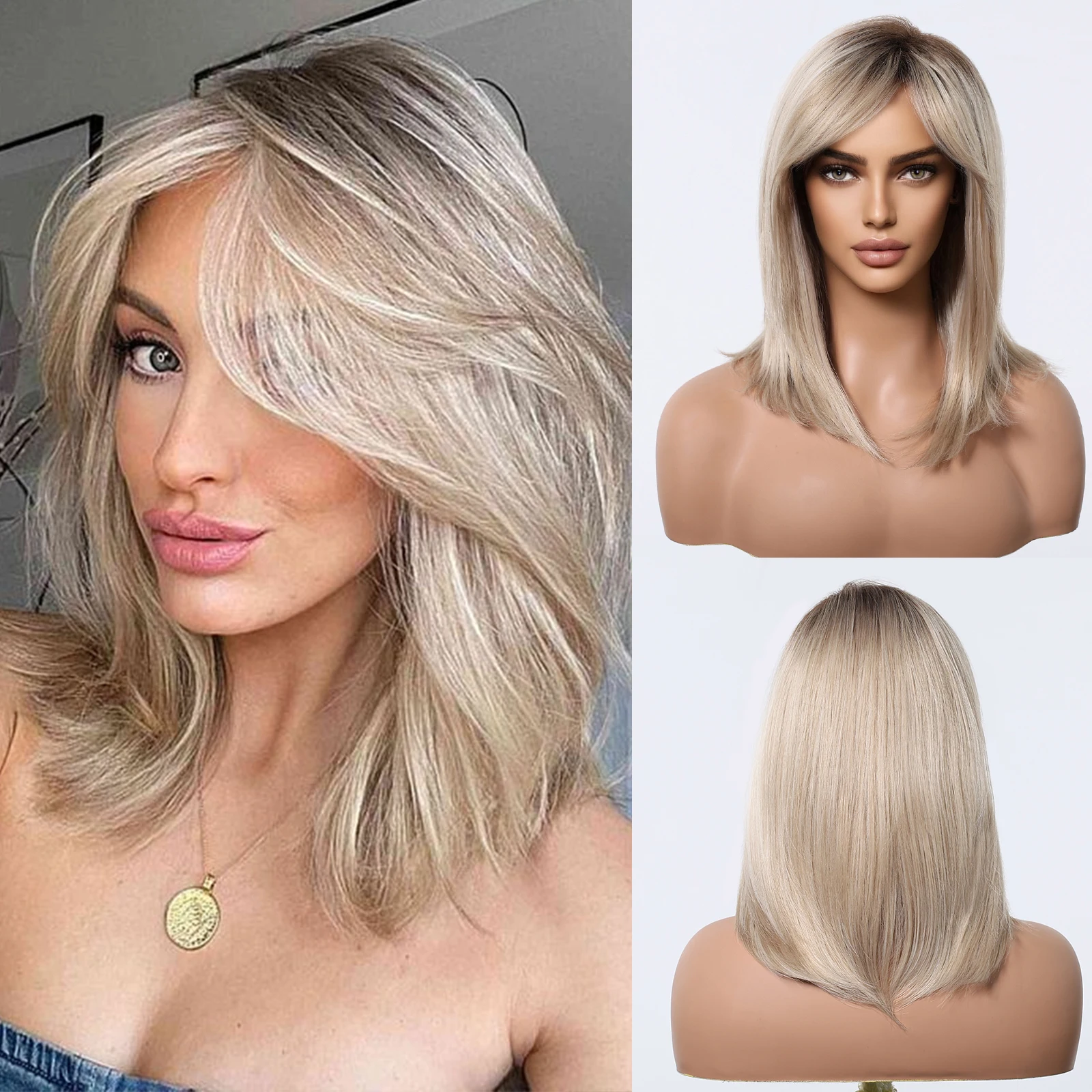 Medium Straight Synthetic Wig Light Golden Blonde Layered Wigs for Women Daily Cosplay Party Use Heat Resistant Fibre Fake Hair