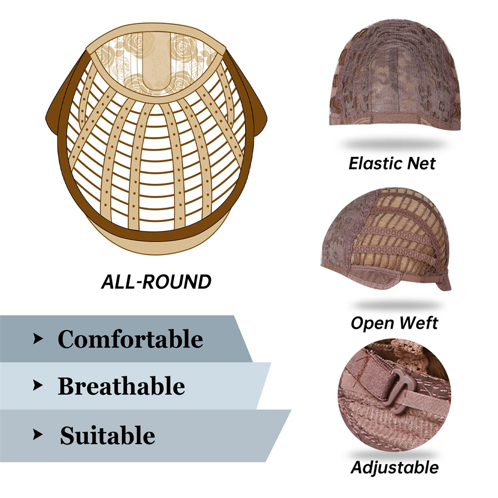 【Adjustable Wig Cap】Two straps inside the wig cap that can be adjusted to 21-23 inch.