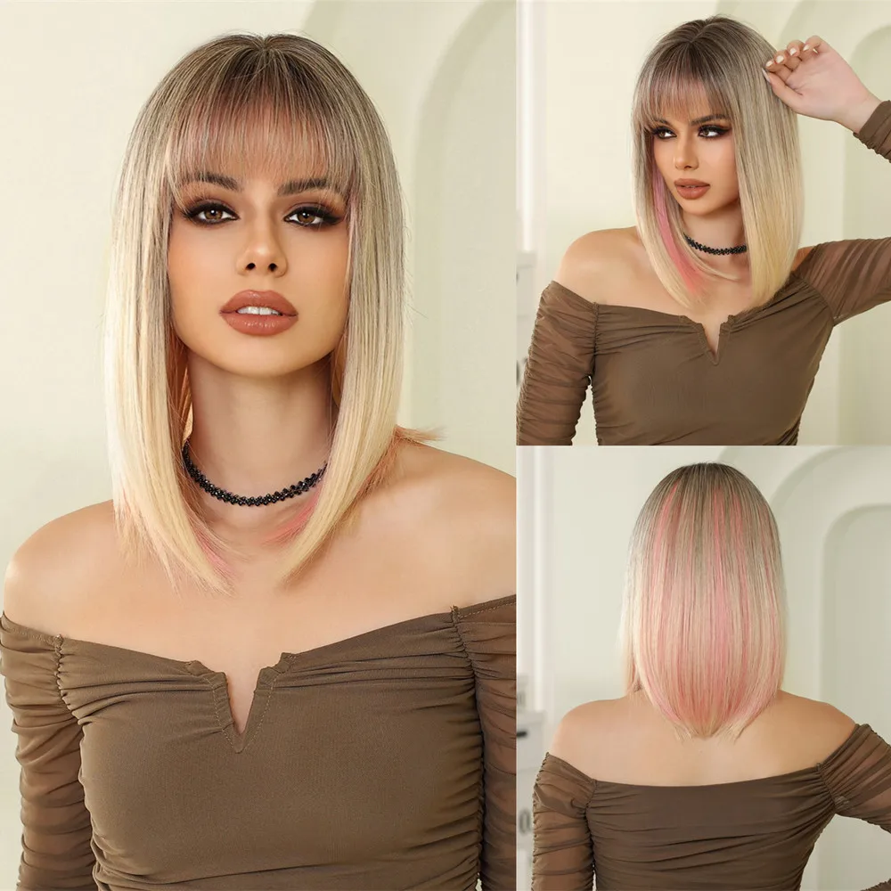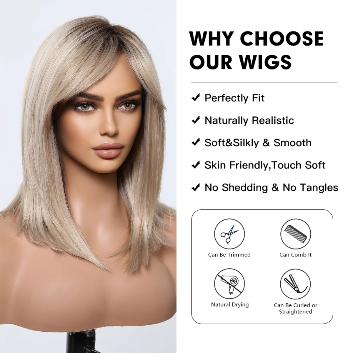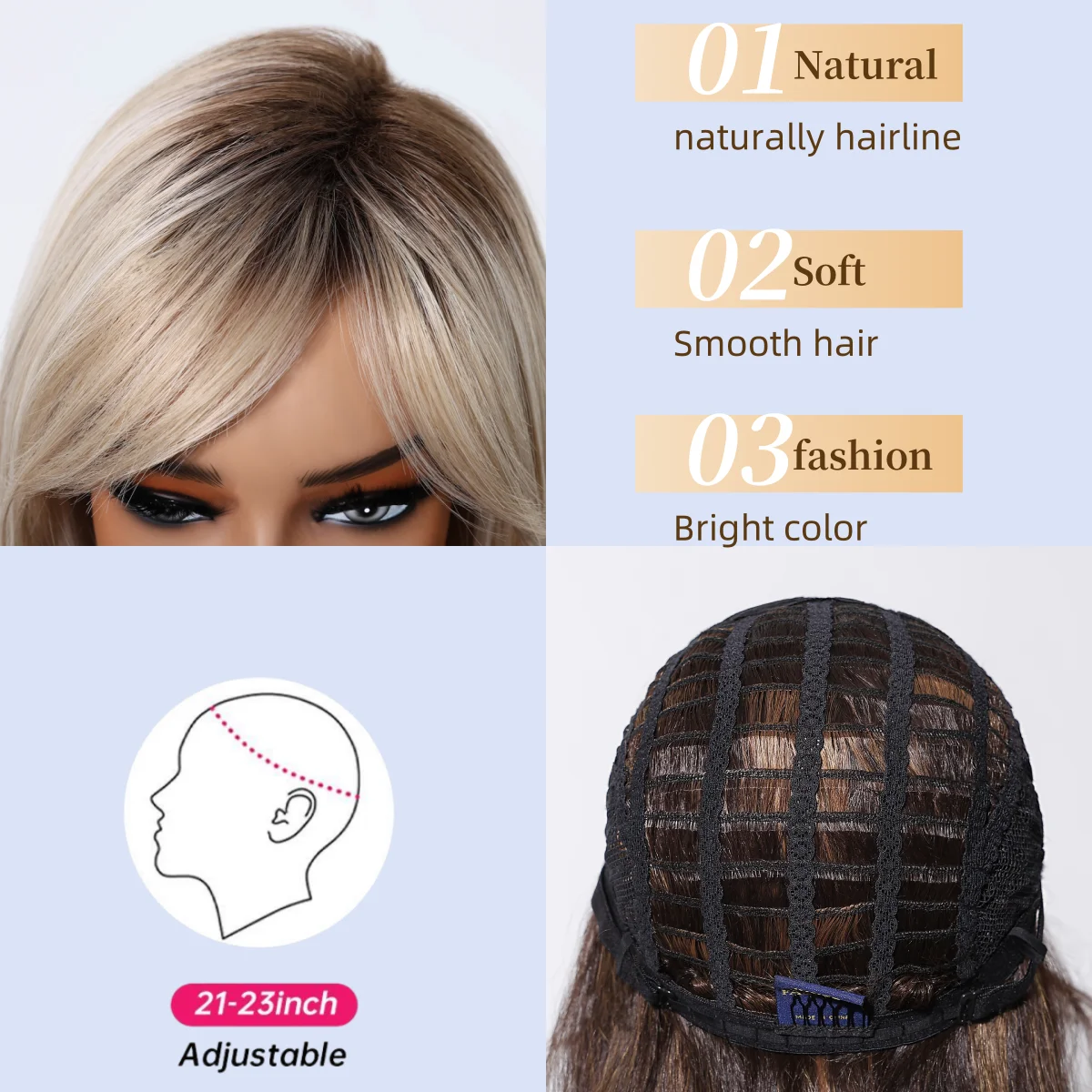 【Premium Material】Light Golden Blonde layered straight women wig,the wig is made of high-quality heat-resistant synthetic fibers. Natural looking through the improvement of traditional technology, heat-resistant and durable, and makes your hair look more natural, soft.