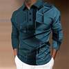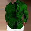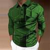 Men’s 3D Printed Geometric Hexagonal Pattern Golf Shirt Long Sleeve Polo Shirt Business Casual Formal Button Collar AutumnWinter