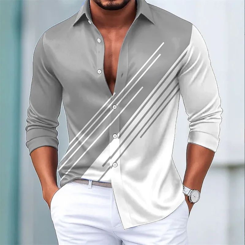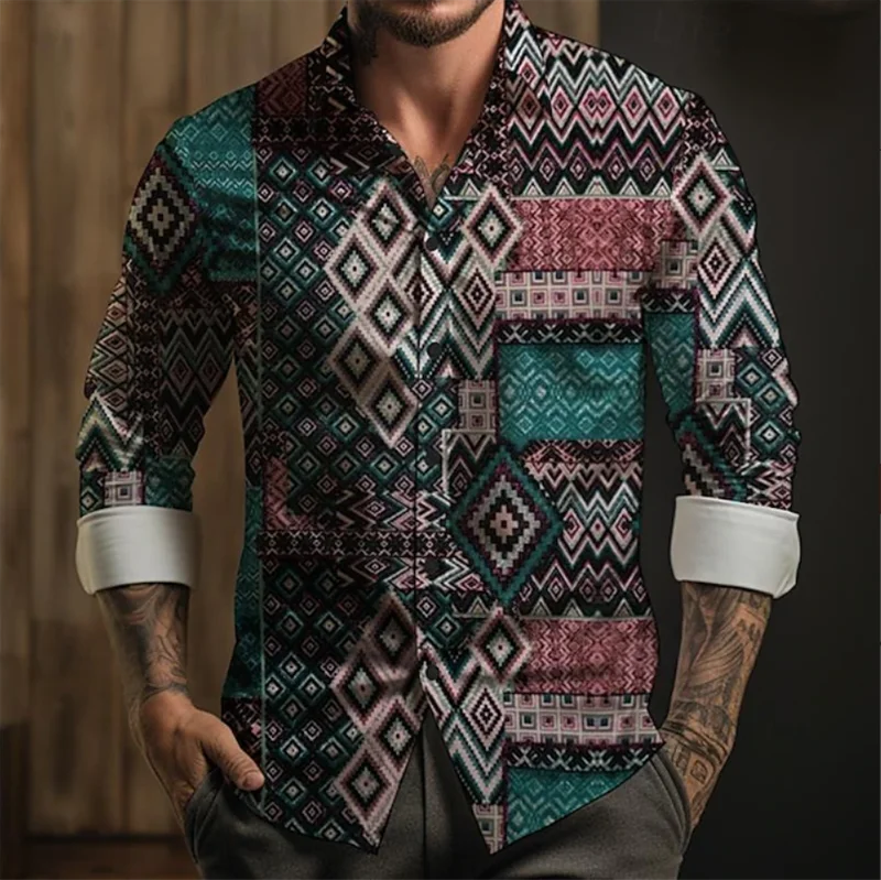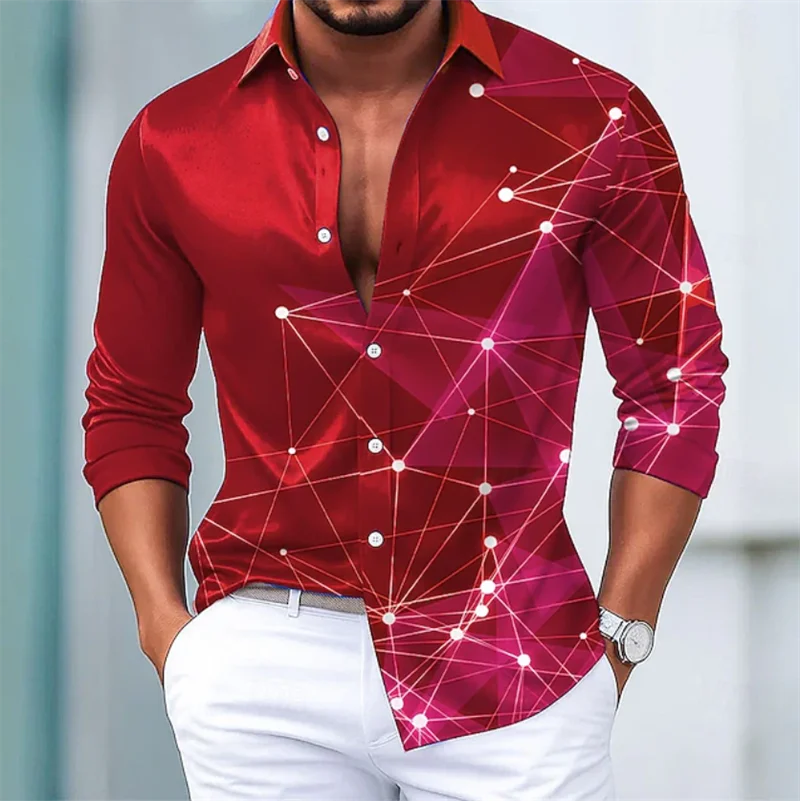 Men’s Geometric Mesh Long Sleeve Shirt Casual Fashion Outdoor Holiday Street 3D Starlight Printed Long Sleeve Shirt