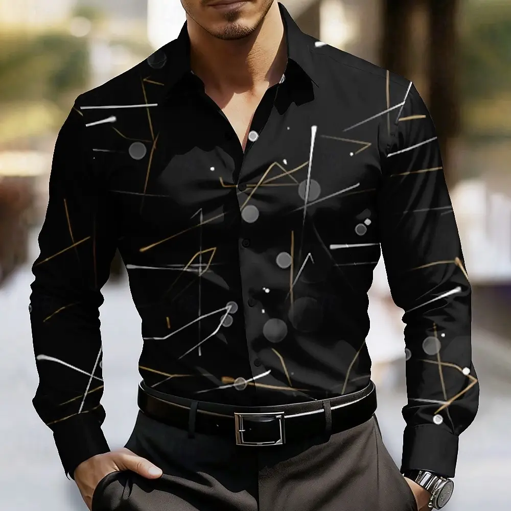 Men’s Geometric Pattern Line Abstract Art Shirt Button Up Shirt Long Sleeve Fashion Casual Spring Fall 3D Print Collared Shirts
