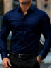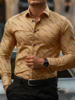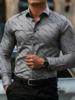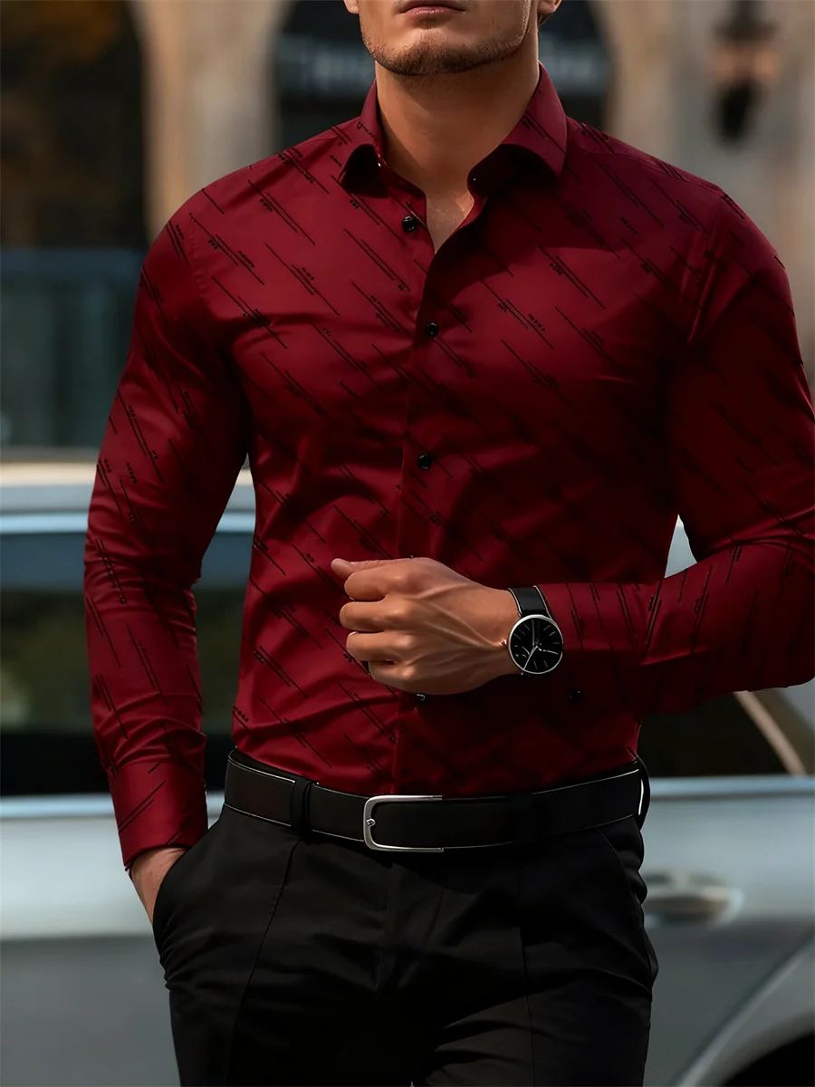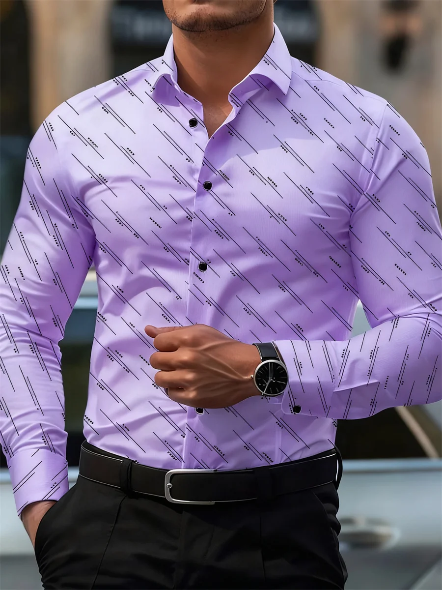 Men’s shirt fashion geometric line print long sleeve shirt business office casual slim versatile daily outdoor commuting top