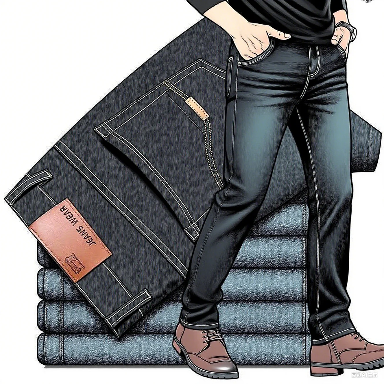 Men’s slim-fitting stretch jeans, business casual cotton denim straight pants, men’s black and blue long pants, suitable for com