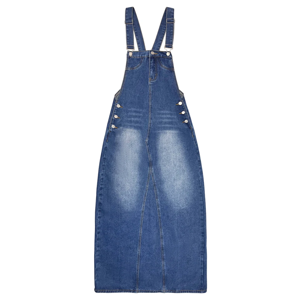 Multiple Buttons Detachable Shoulder Straps Maxi Denim Dress Women’s Casual Denim Overall Dress Loose Fit Versatile Outfits