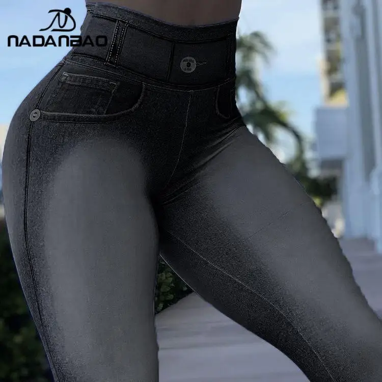 Nadanbao Denim 3D Print Graphic Leggings Women’s High Waist Casual Trousers Stretchy Skinny Tights Fashion Sexy Pants Bottom
