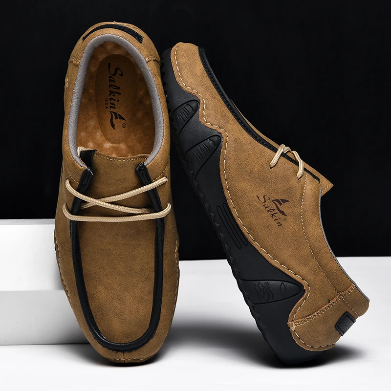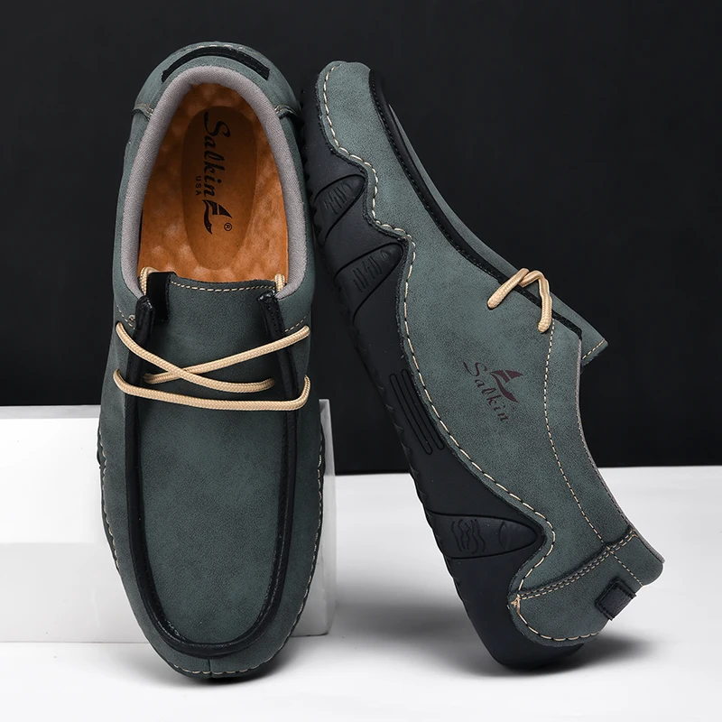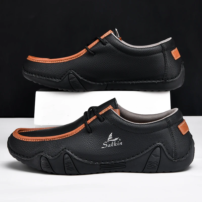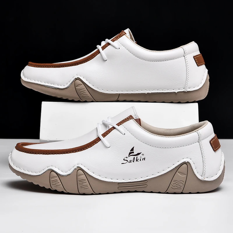 New Fashion Handmade Leather Casual Men Shoes Design Sneakers Man Loafers Breathable Low Top Flat Shoes Driving Plus Size