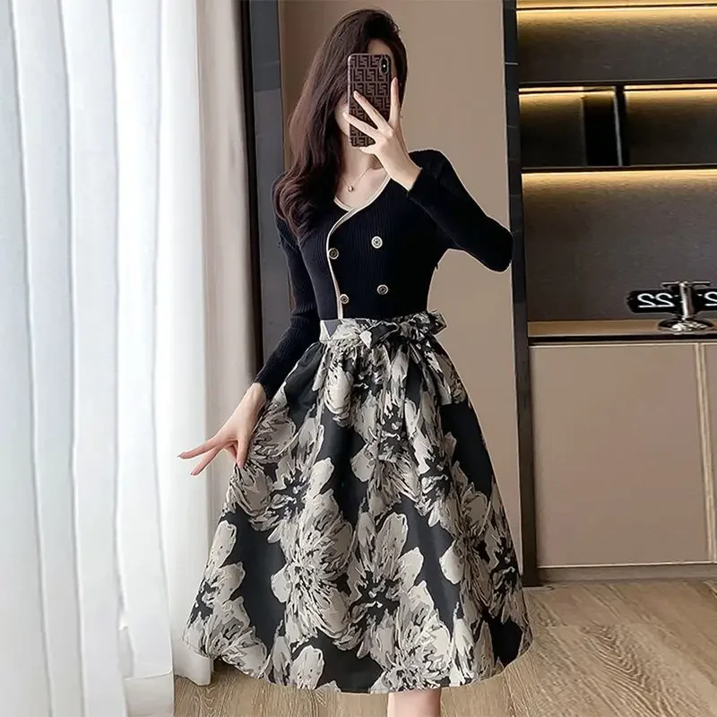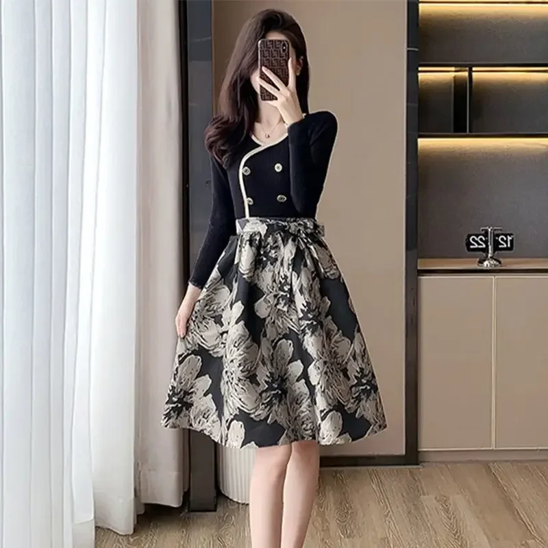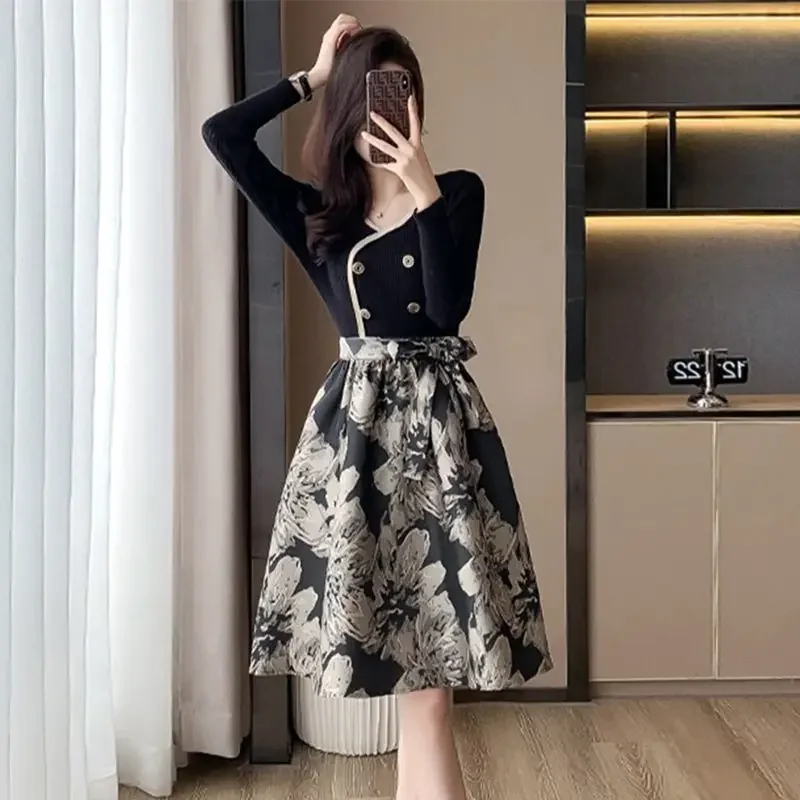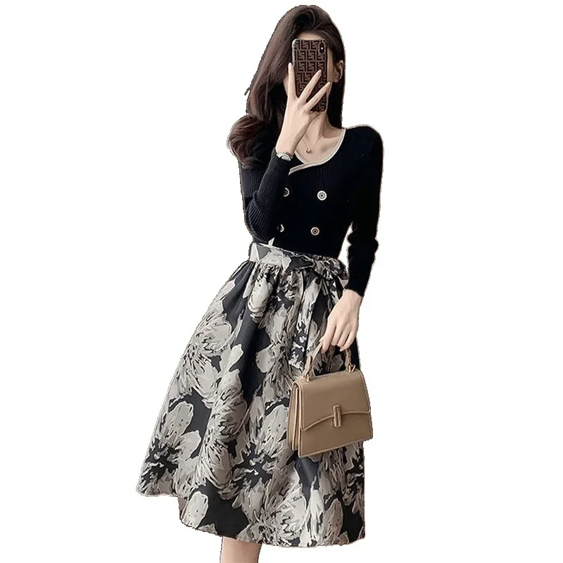 New 2025 High-End Small Fragrance Style Dress Elegant High Waist Slimming Mid-Length Not Picky on People Noble Slimming Midi Ski