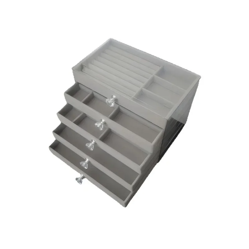 New 5 Layers Exquisite Gray Jewelry Box Earrings Ring Drawer Type Storage Box Large Capacity Anti-oxidation Jewelry Box