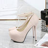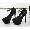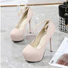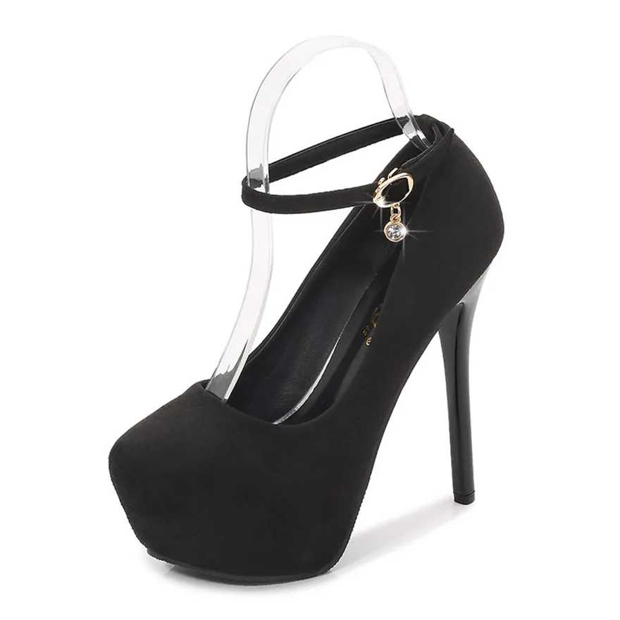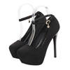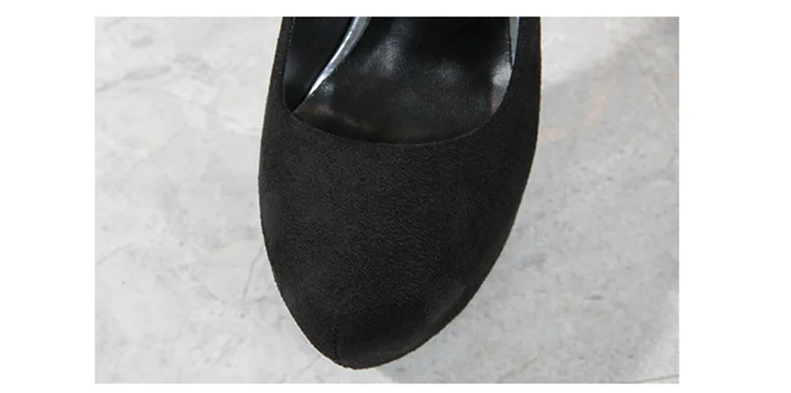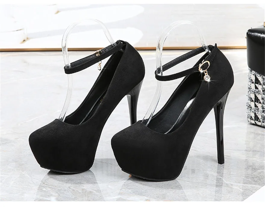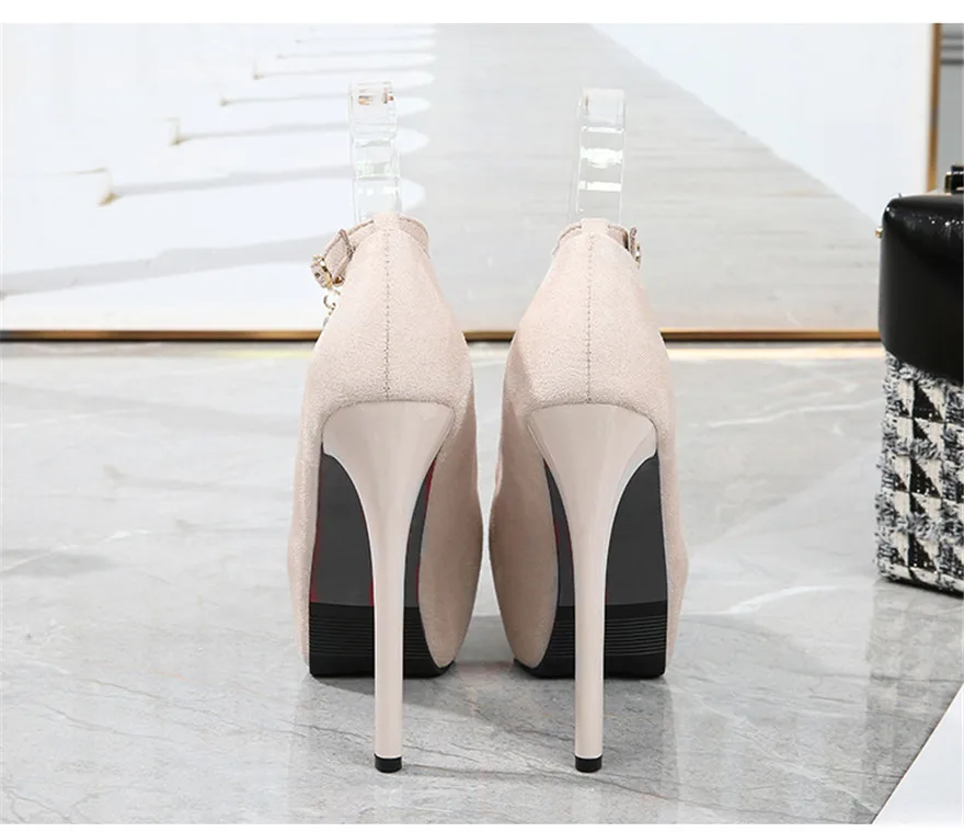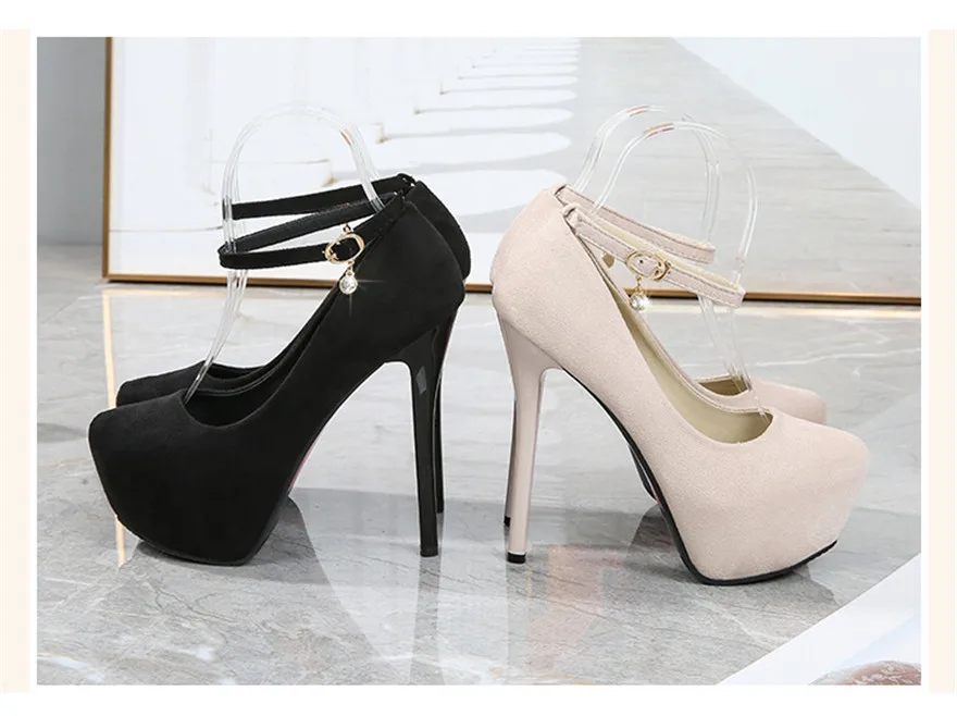 New Brand Women Pumps Sexy High Heels Platform Black Apricot Dress Party Work Shoes Lady Round Toe Flock Ankle Strap Autumn Shoe