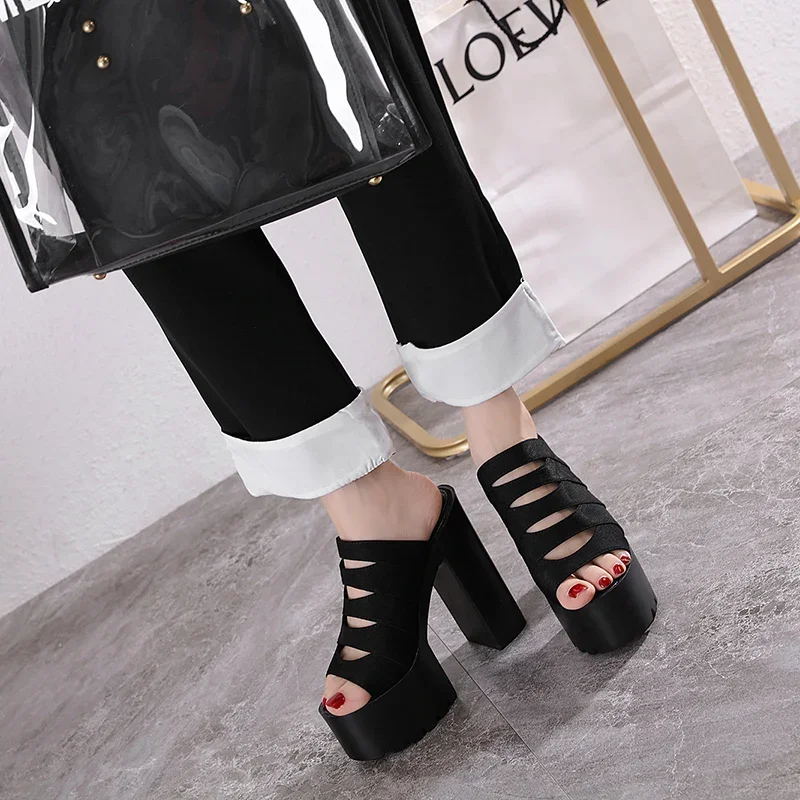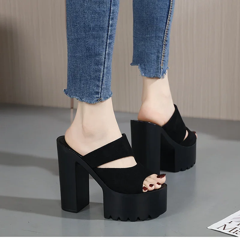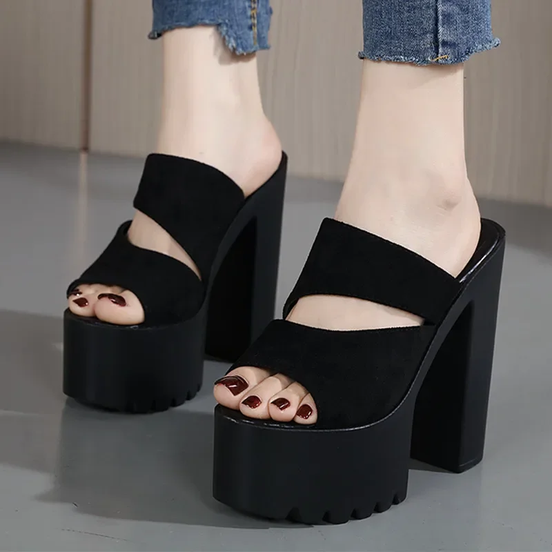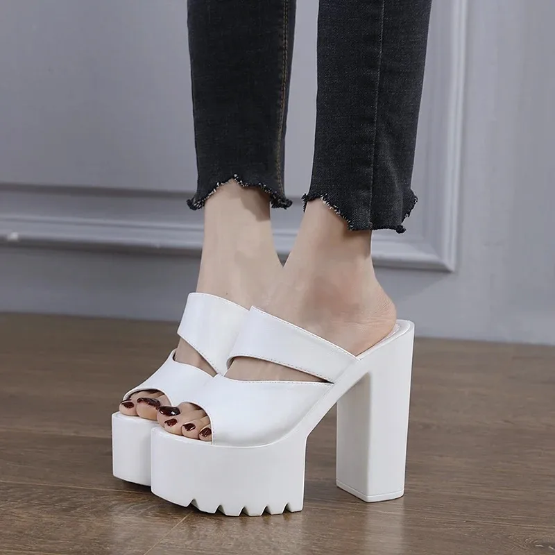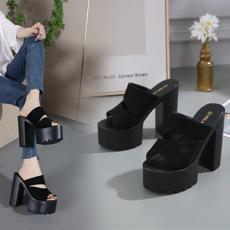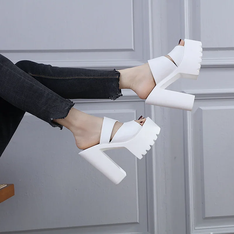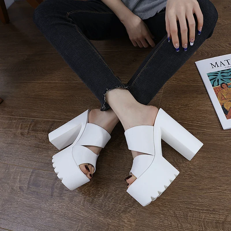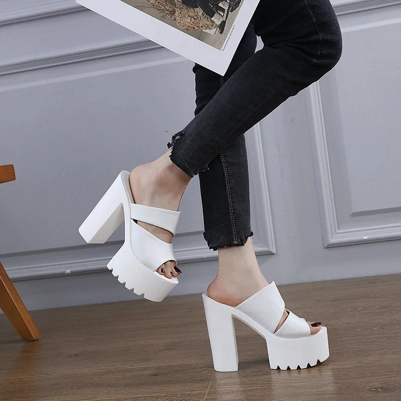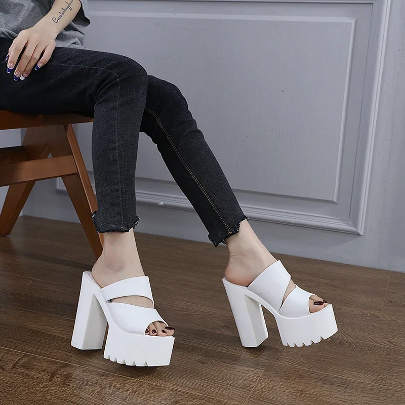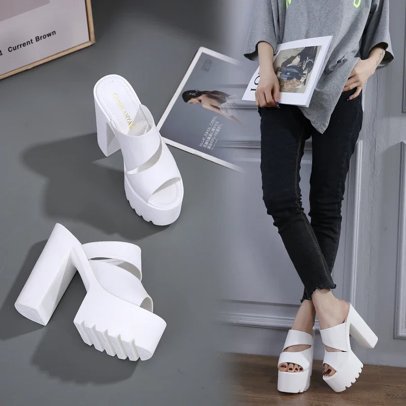 New European and American Style Women’s Thick-Soled Slippers, 15CM High-Heeled Waterproof Platform, Sexy T-Shaped Design