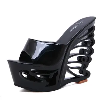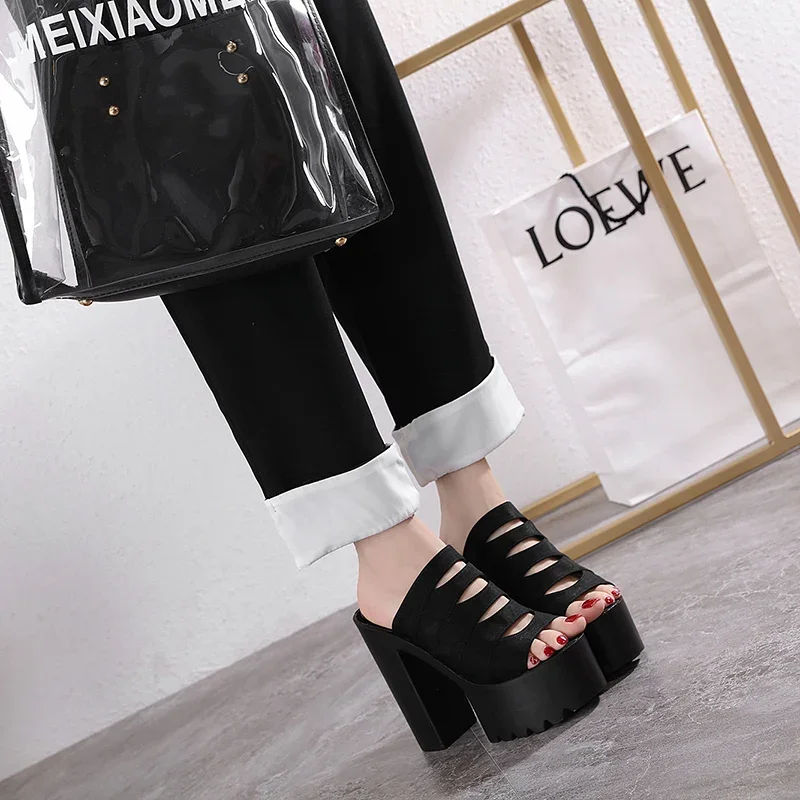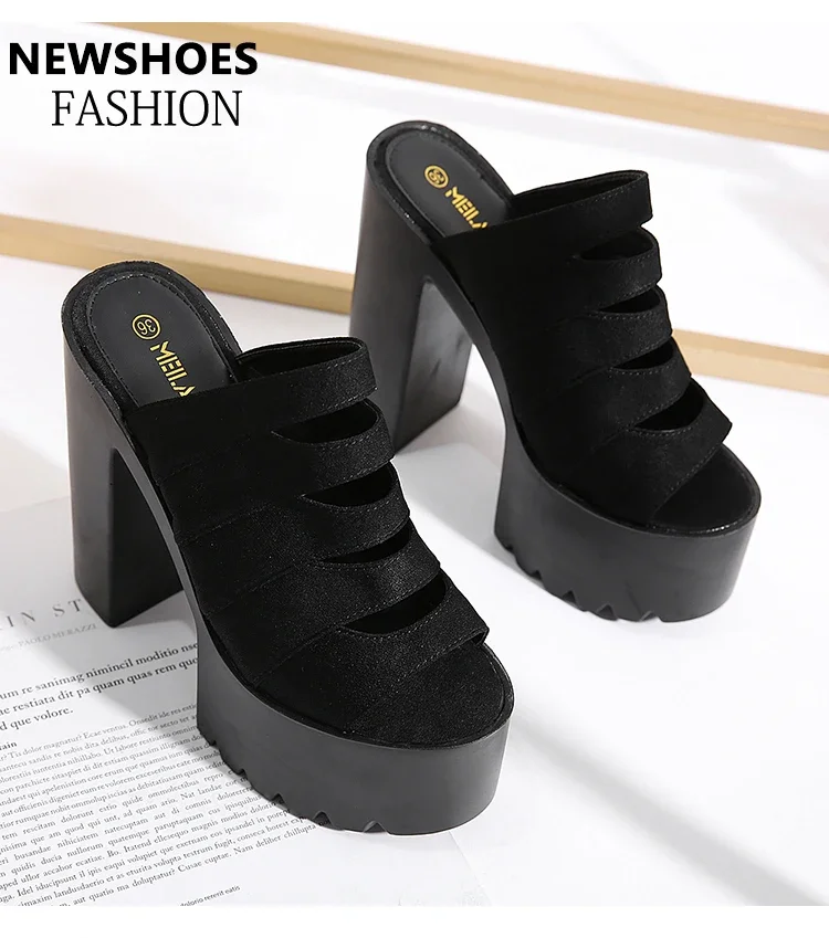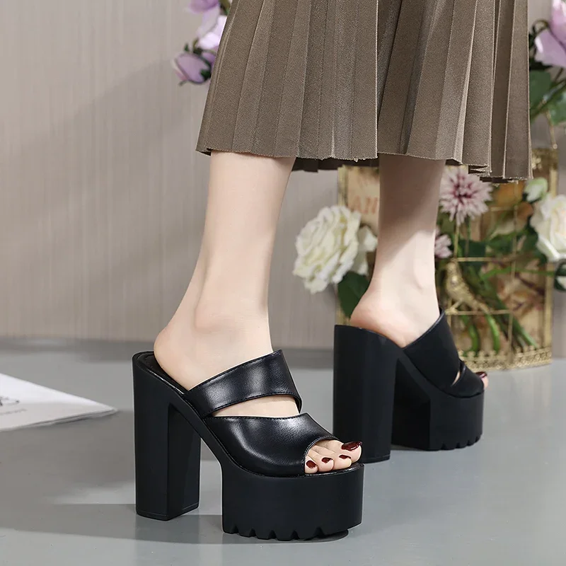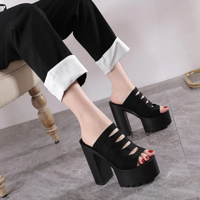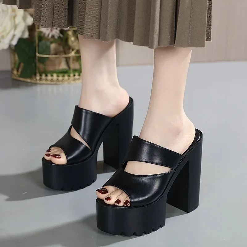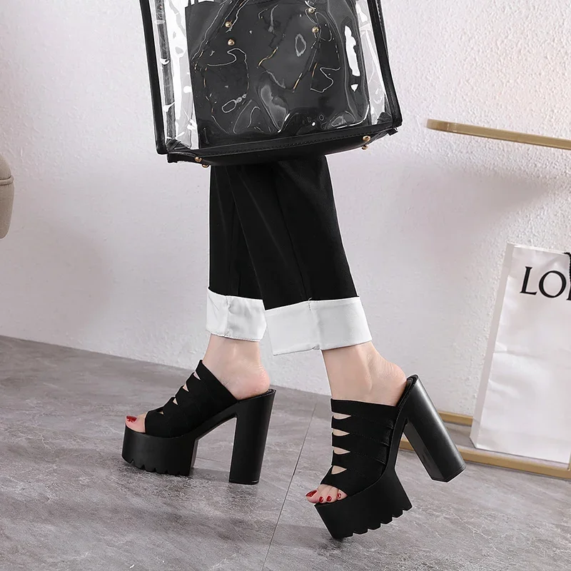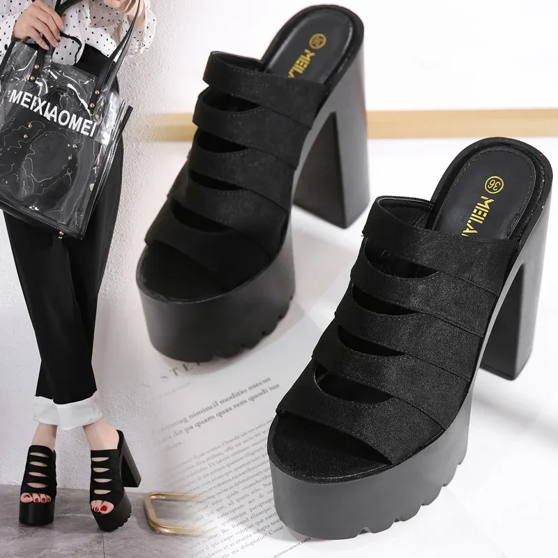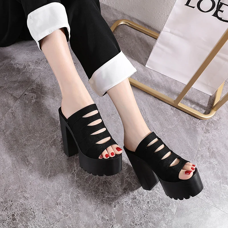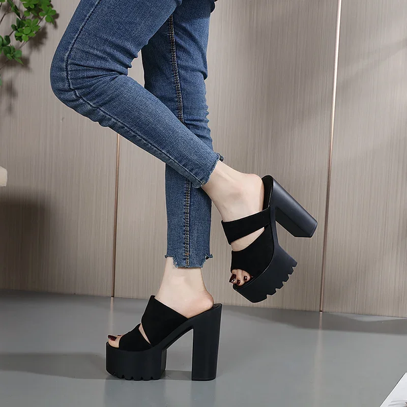 New European and American Style Women’s Thick-Soled Slippers, 15CM High-Heeled Waterproof Platform, Sexy T-Shaped Design