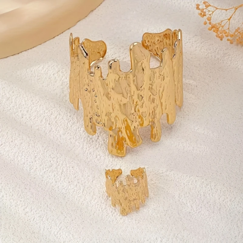 New Fashionable Pleated Geometric Splicing Open Bracelet Ring, Women’s Personalized Trendy Holiday Accessories Jewelry