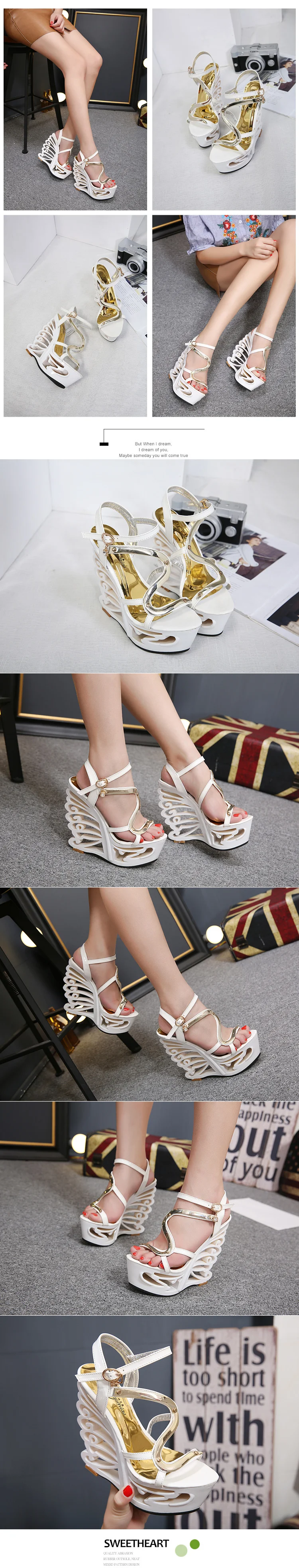 New High Quality Buckle Strap Sexy Strange Style Heel Summer Women Shoes Retro Novelty Sandals 14.5cm High Heels Nightclub Shoes