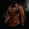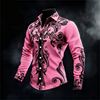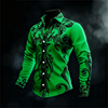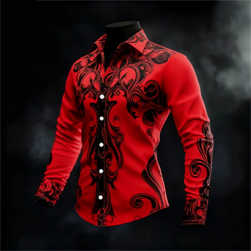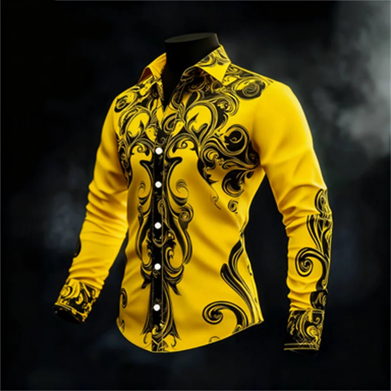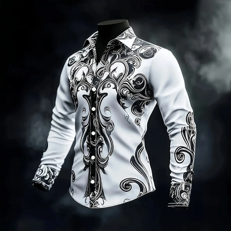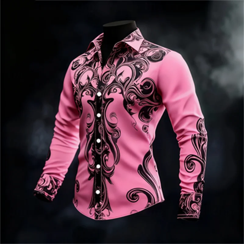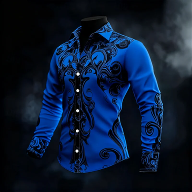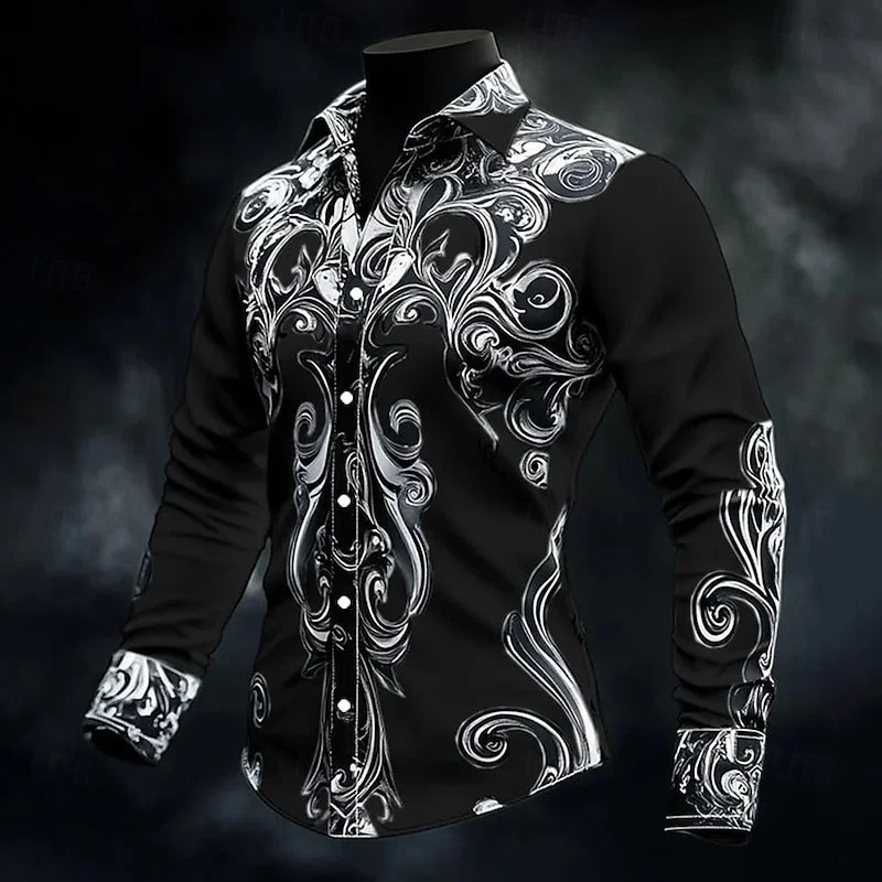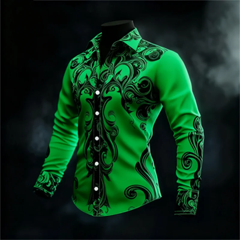 New men’s casual long sleeved button up shirt with artistic pattern 3D printing, fashionable and comfortable top