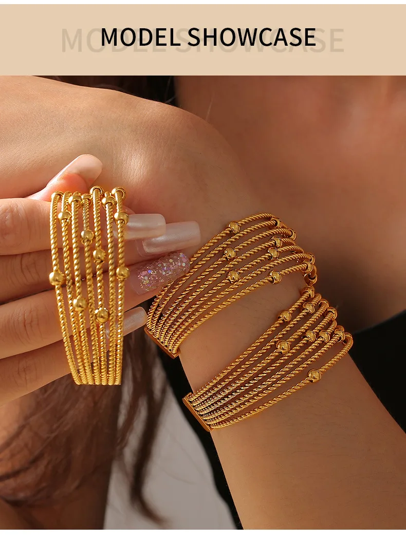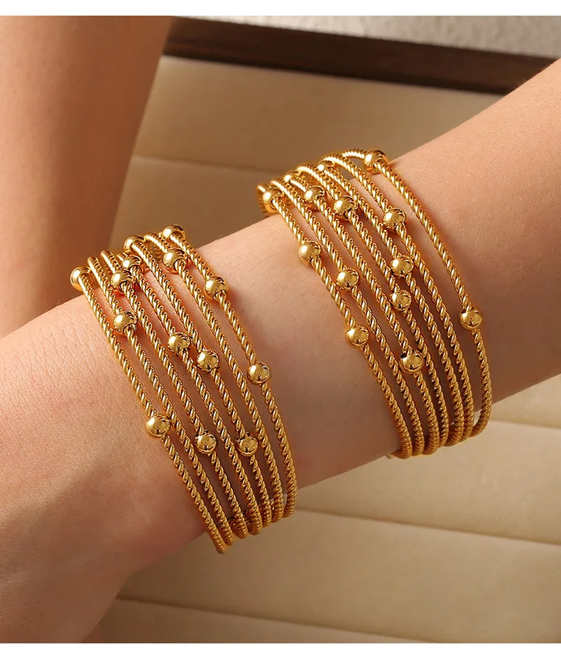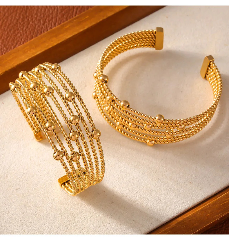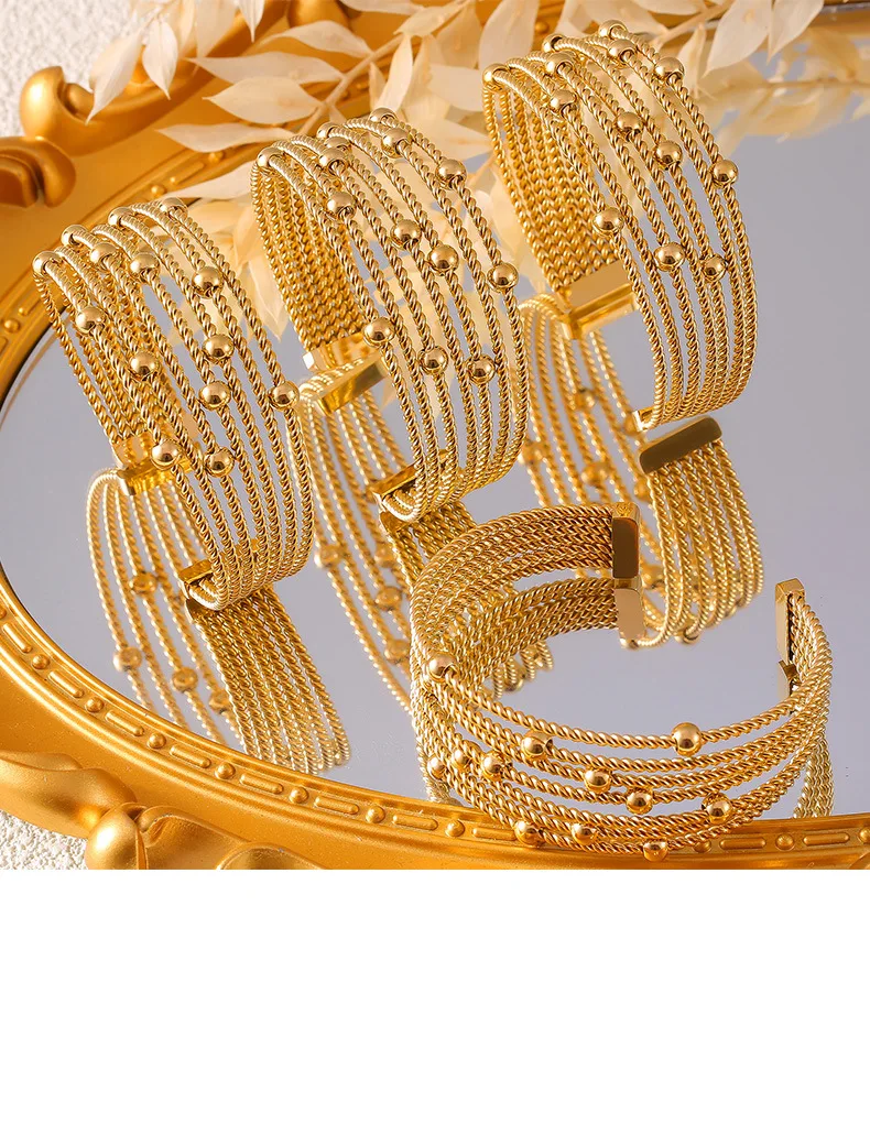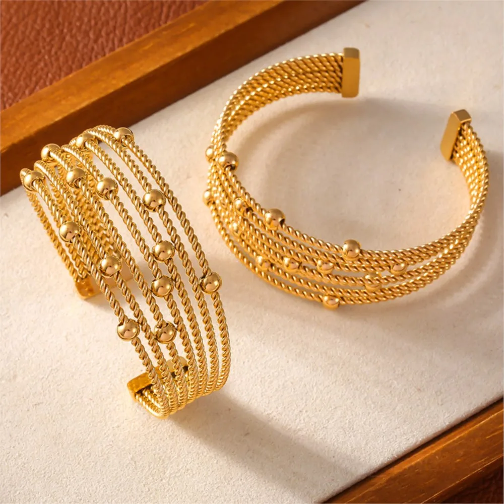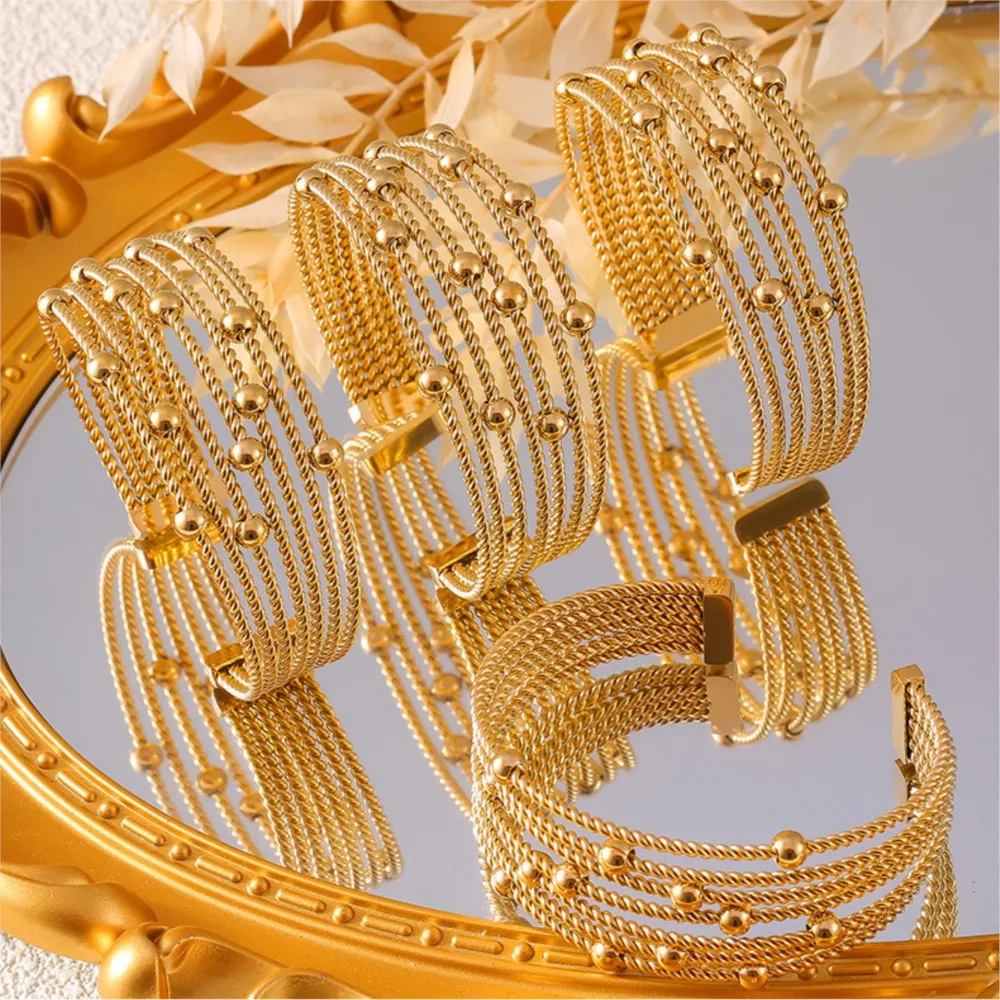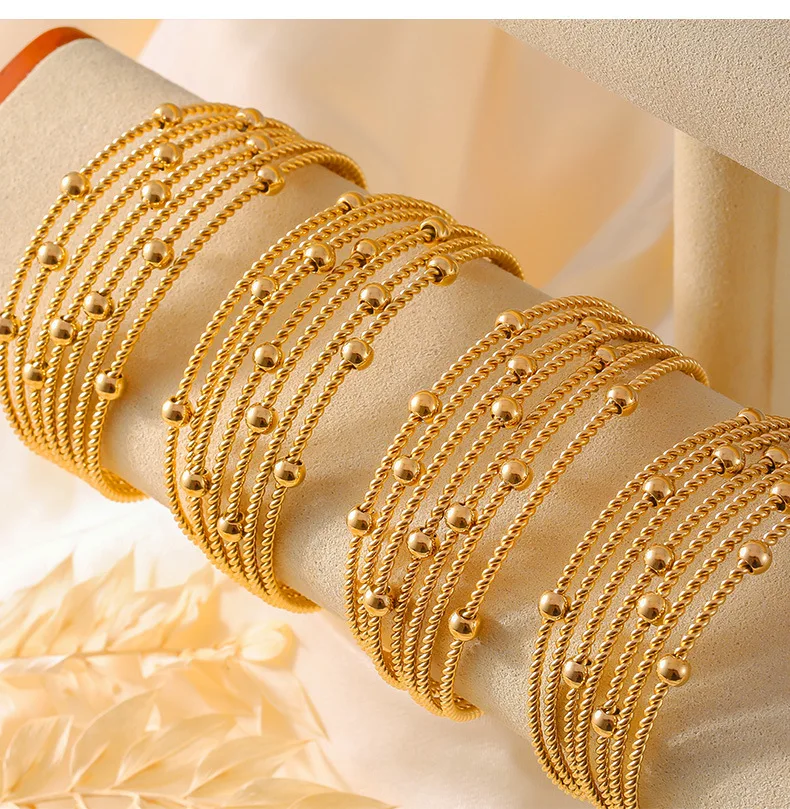 New Multi-Layer Cuff Bracelets For Women Stainless Steel Beaded Gold Plated Round Wristband Women Bangles Charm Jewelry Gift