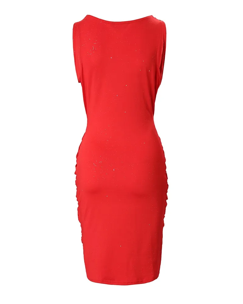 New Sexy Women Twist Design Plunging Neck Glitter Party Dress Summer Sleeveless Elegant Bodycon Mini Skinny Dresses Red