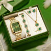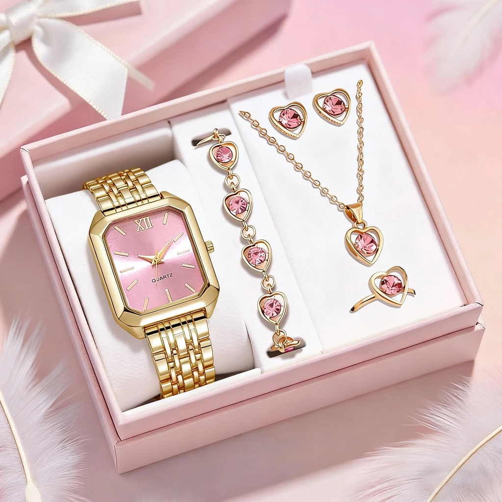 New simple and fashionable women’s round dial leather strap quartz watch + exquisite jewelry set Back to school season graduatio