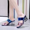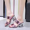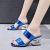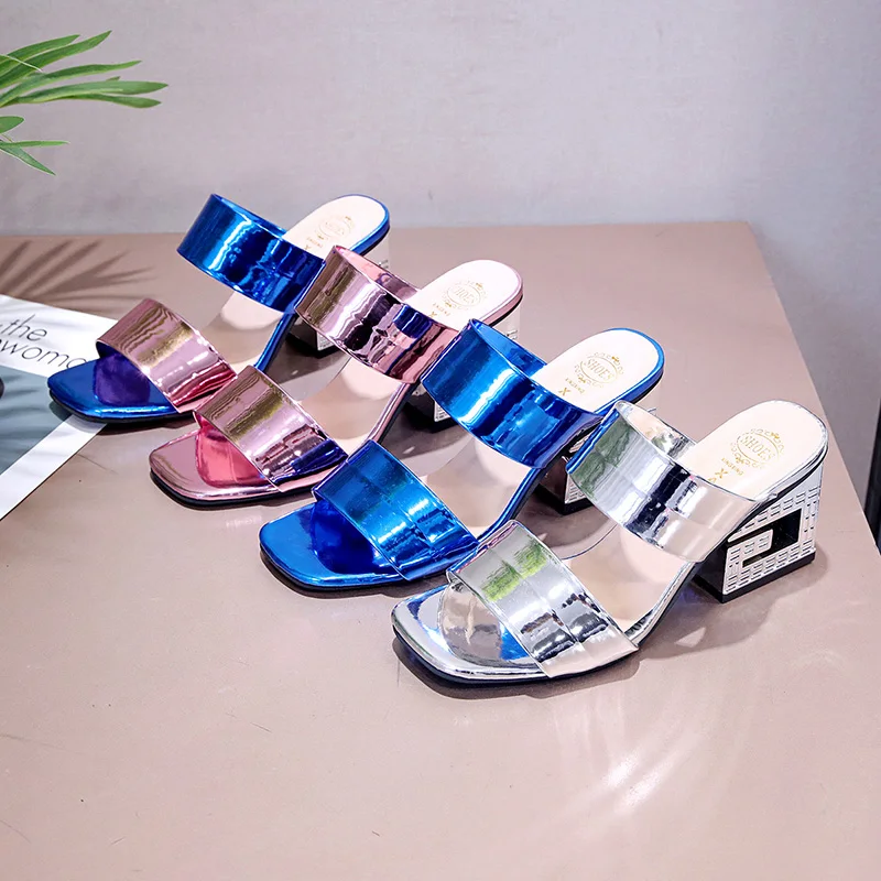 New Summer Block-heeled Sandals for Women Shiny Heeled Slippers Roman Semi-slippers women shoes