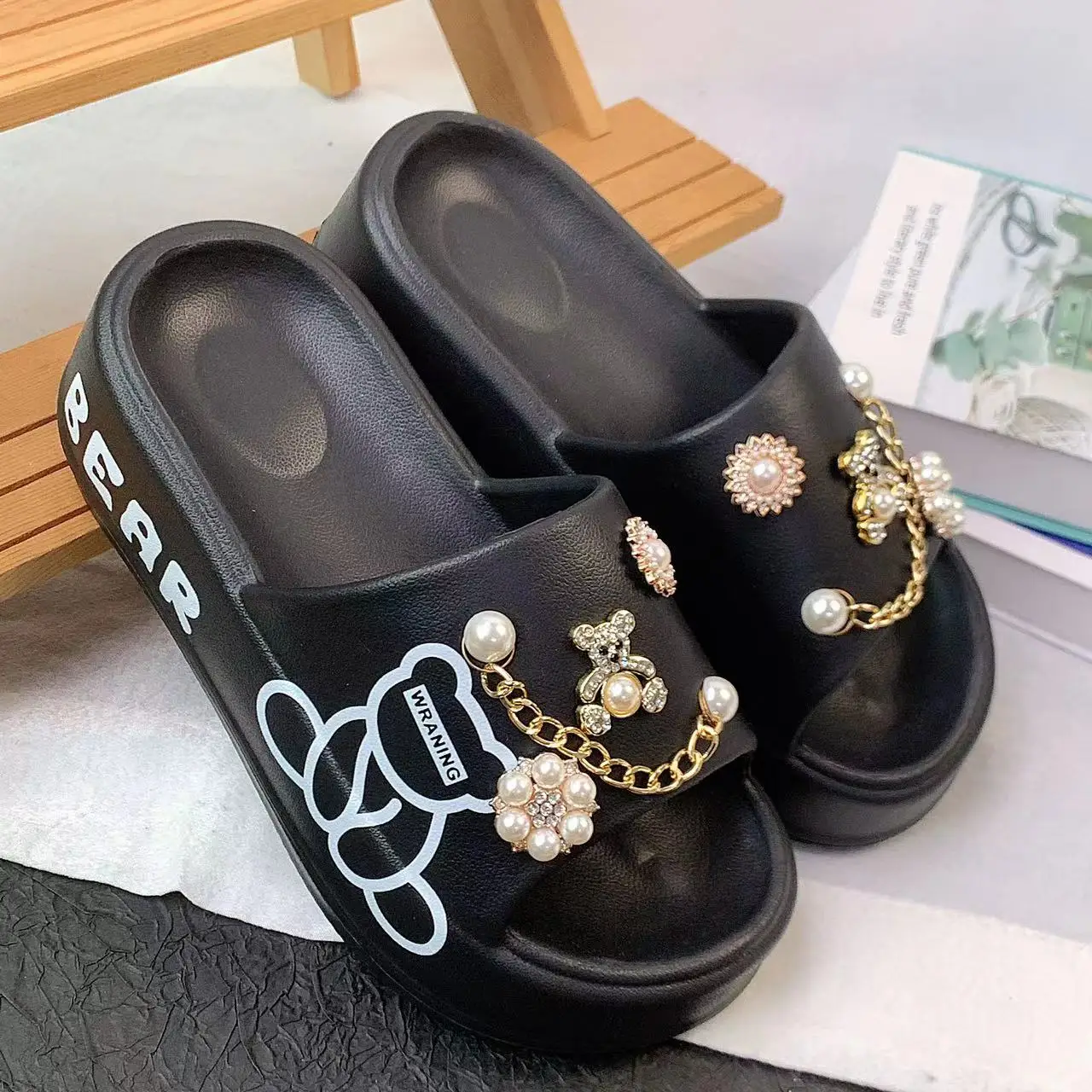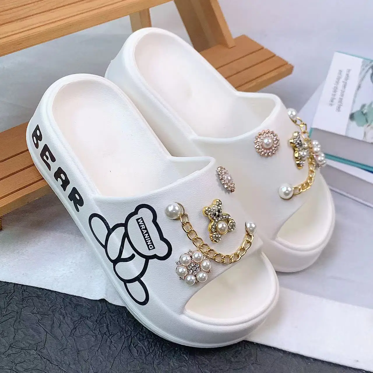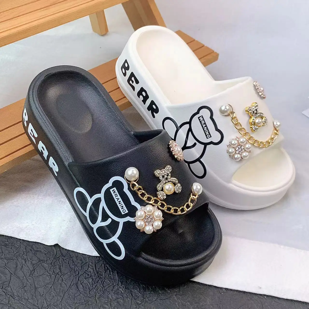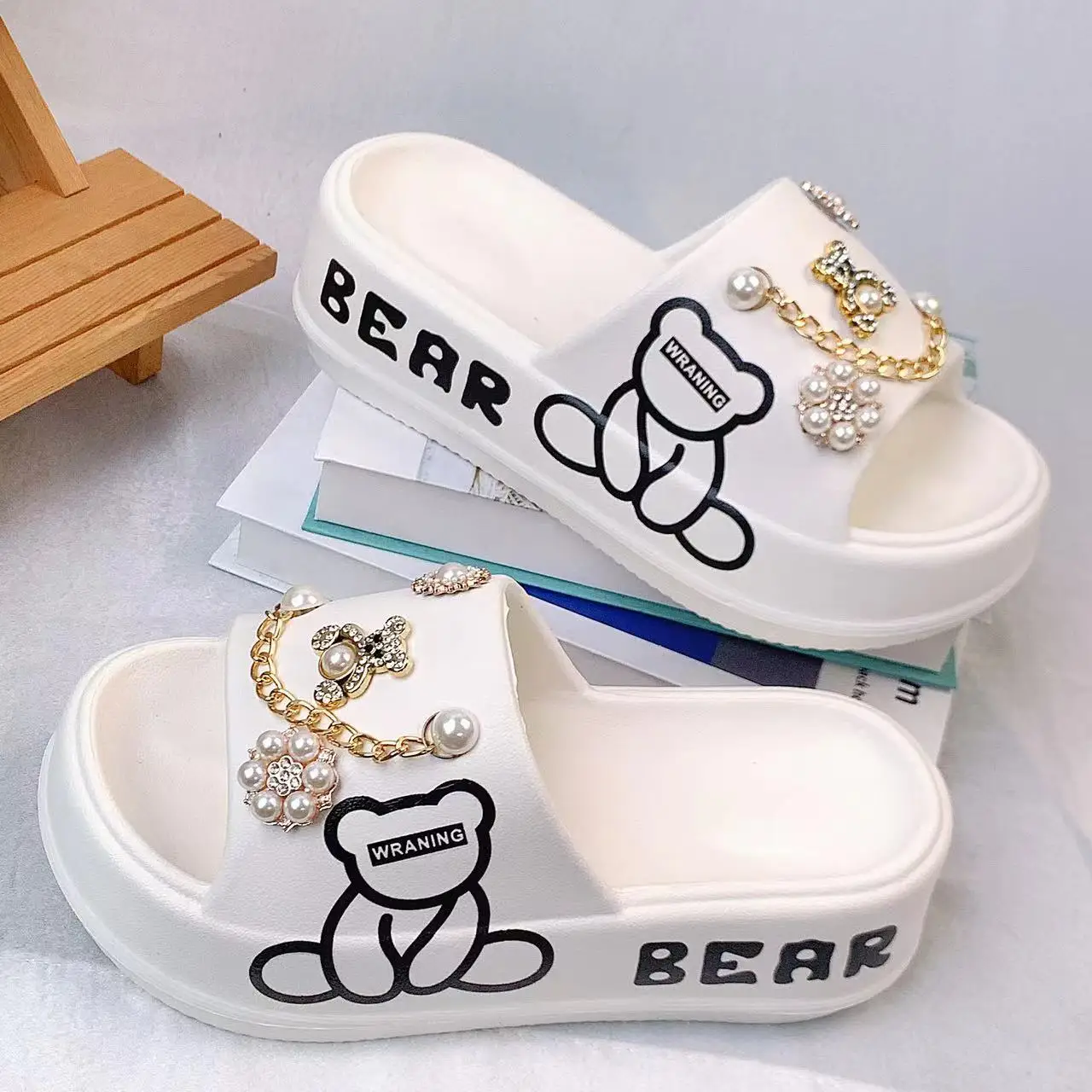 New Thick-Soled Slippers for Women, Made of Eva Material, Ultra-Light, Soft and Comfortable, Slip-On Slippers for Outdoor Wear, Cute Golden Bear Set, Beach Sandals