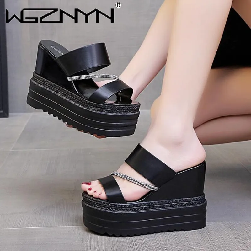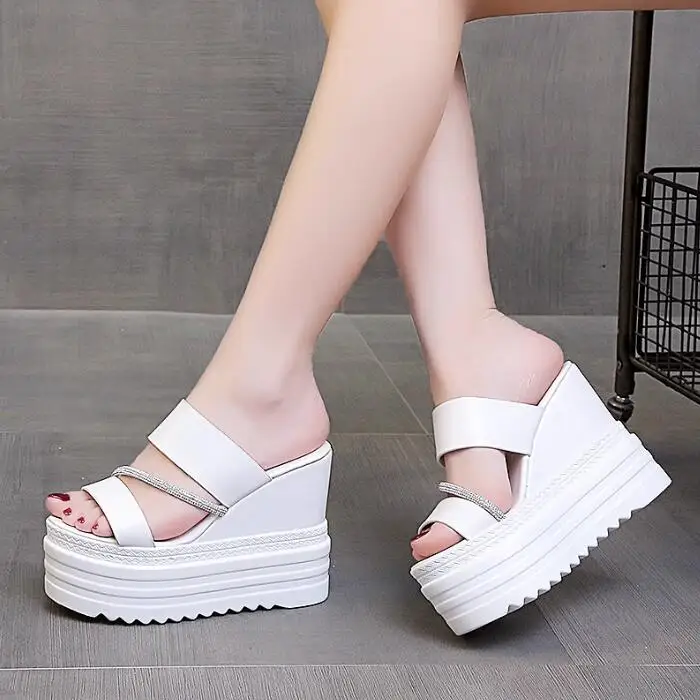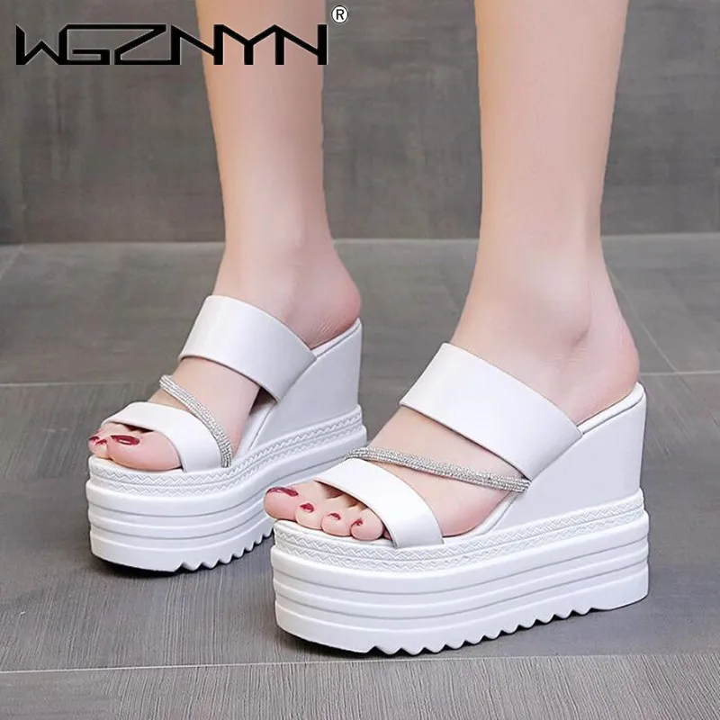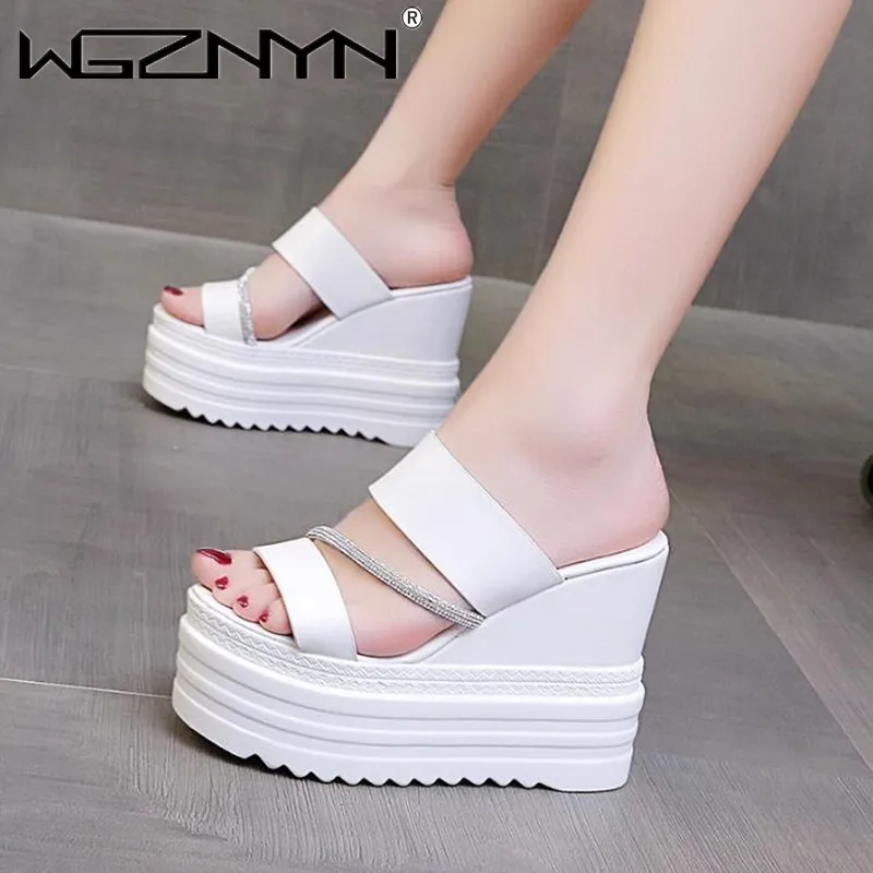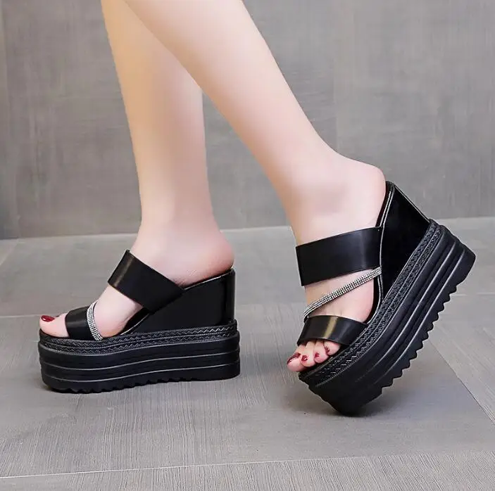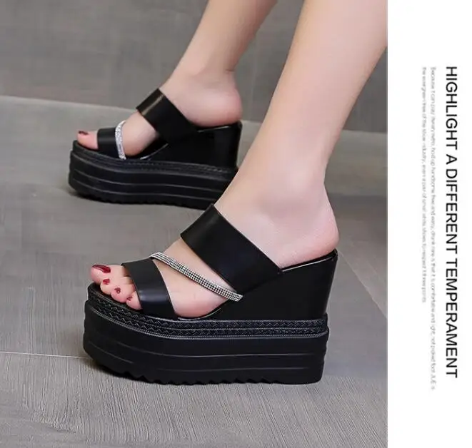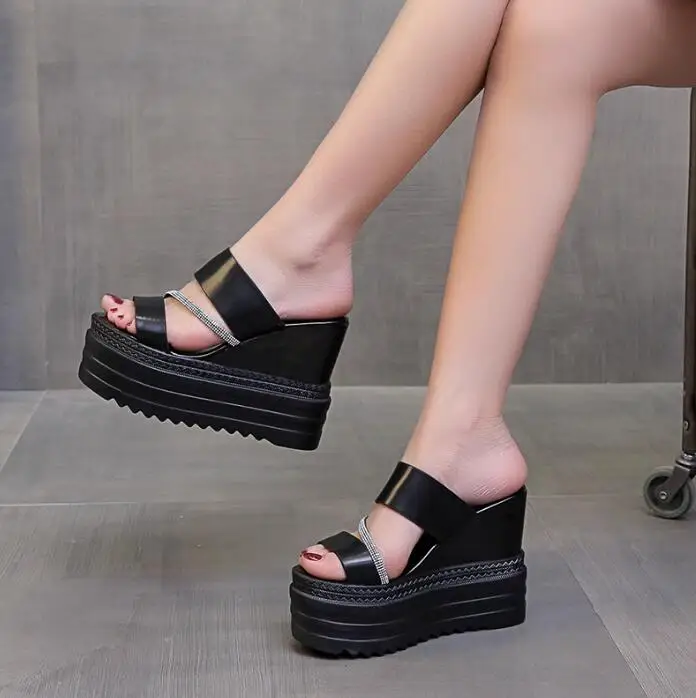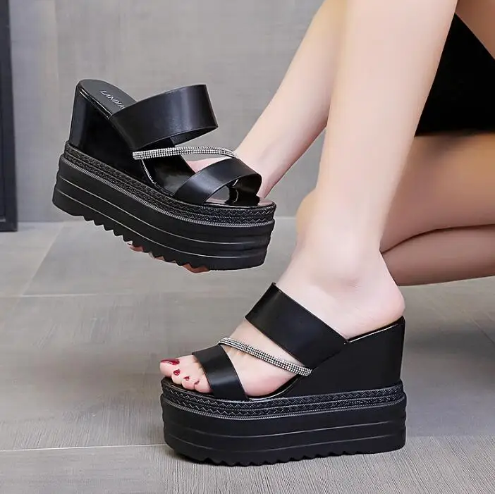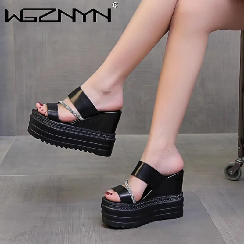 NEW Women Super High Heels Sexy 12CM Heel Wedges Sandals Thick Bottom Platform Slippers Party Sliders Open-toed Designer Sandals