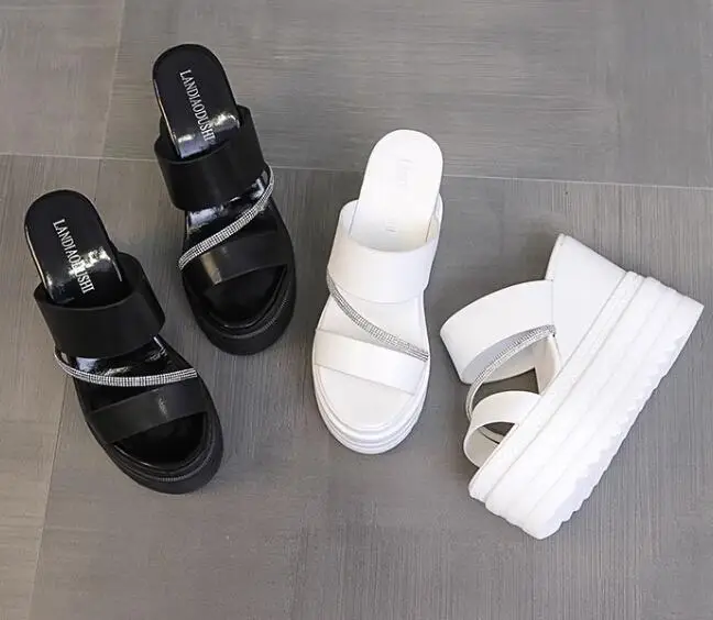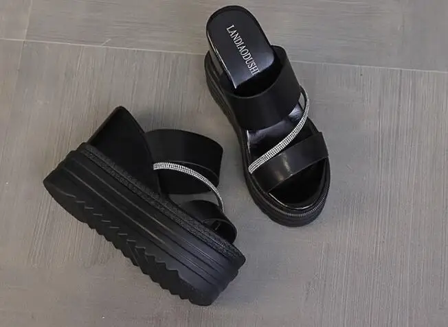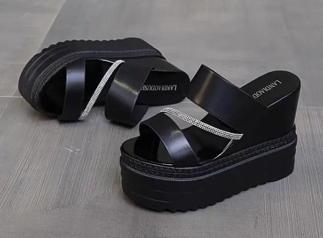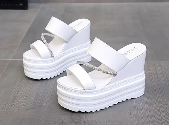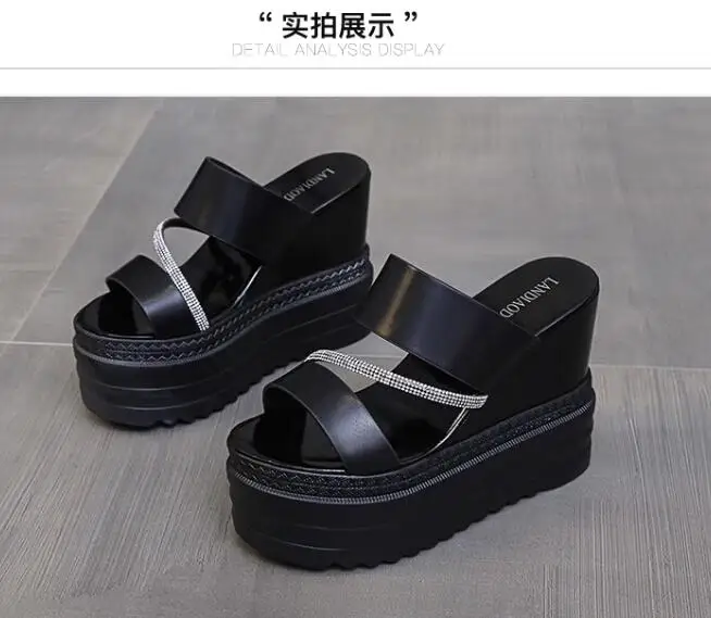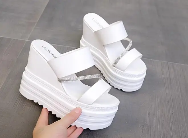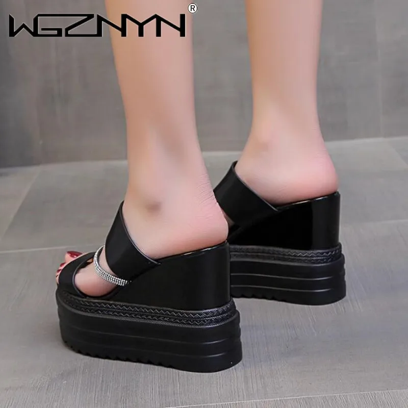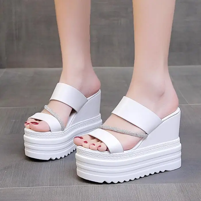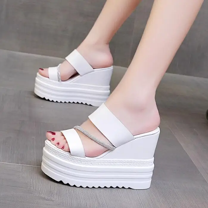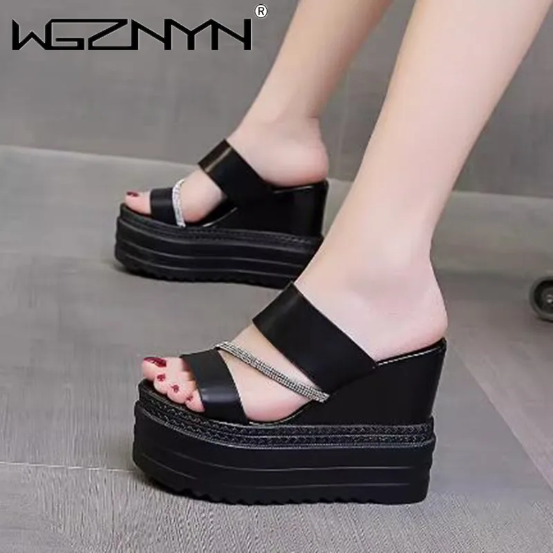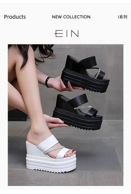 NEW Women Super High Heels Sexy 12CM Heel Wedges Sandals Thick Bottom Platform Slippers Party Sliders Open-toed Designer Sandals