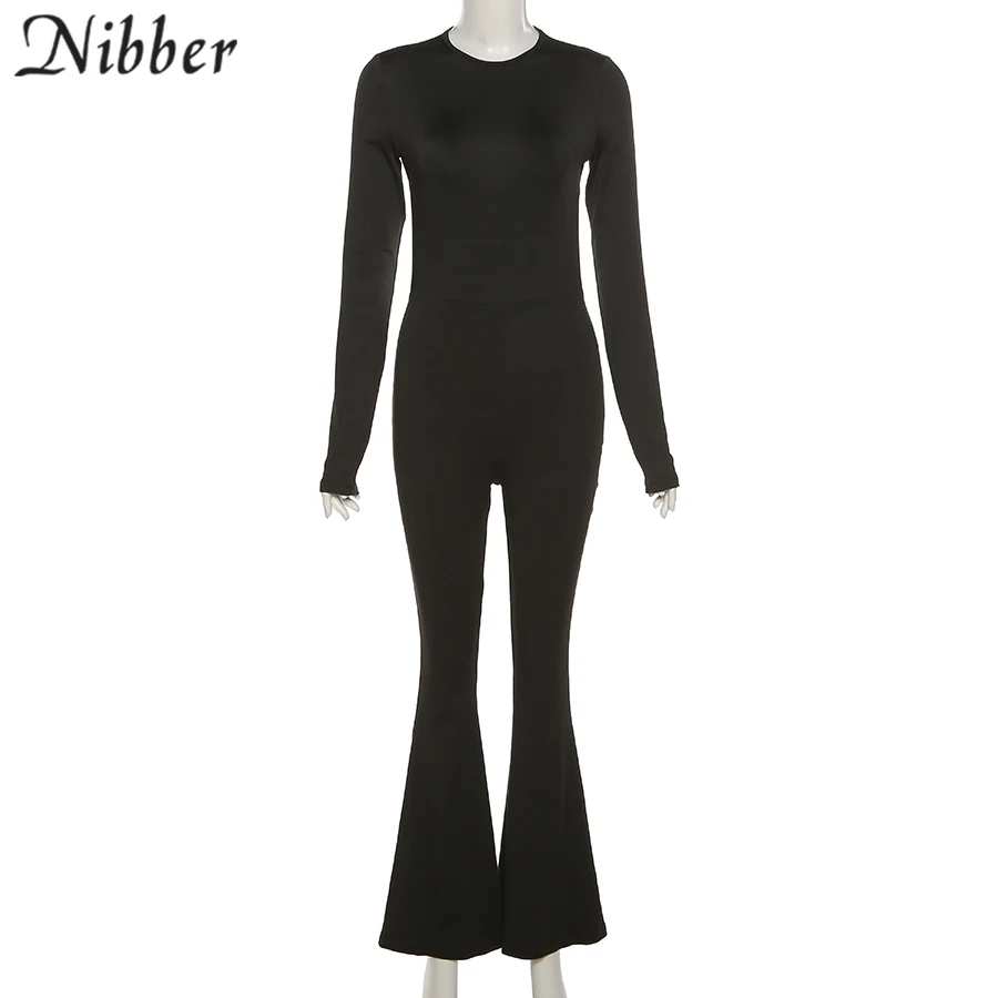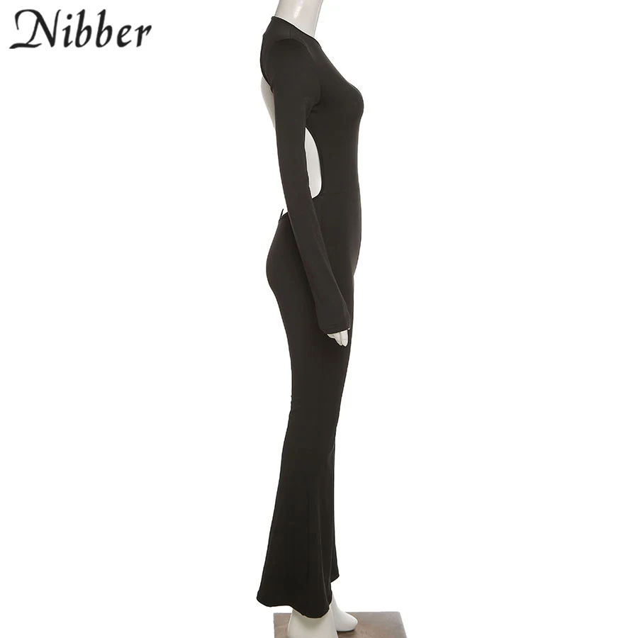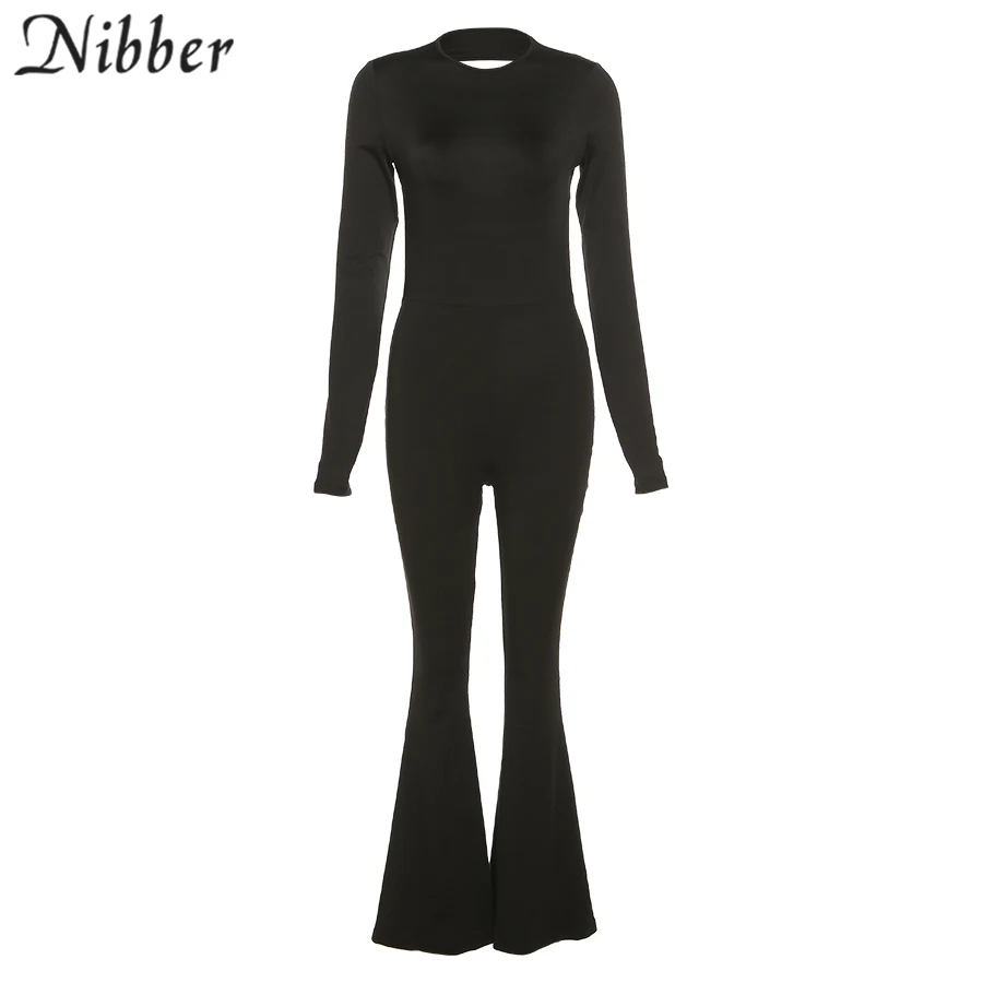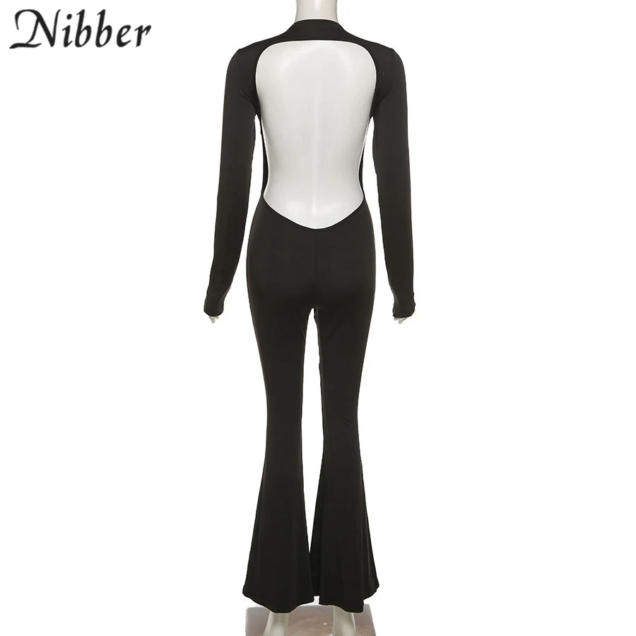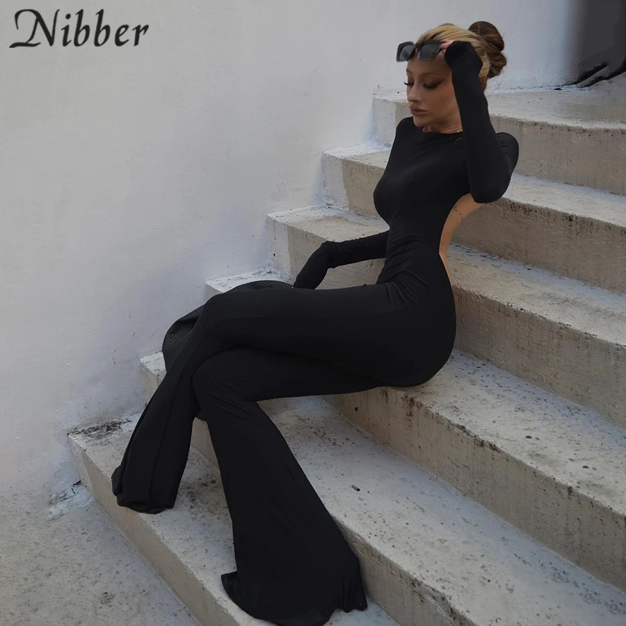 Nibber New Autumn Fashion Flared Jumpsuit Sexy Open-Back Hollow High Street For Temperament Women Street Daily Commuting Wear