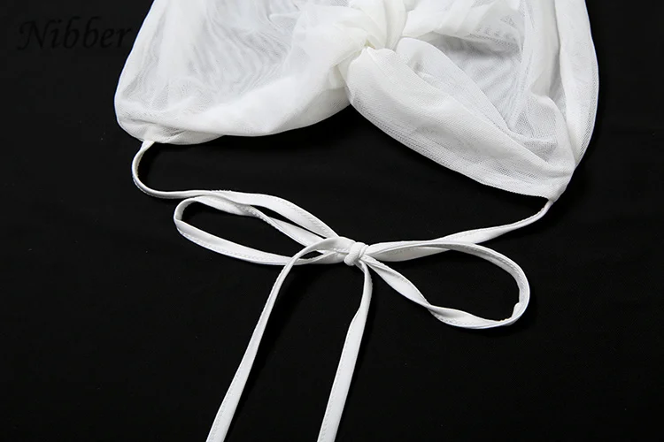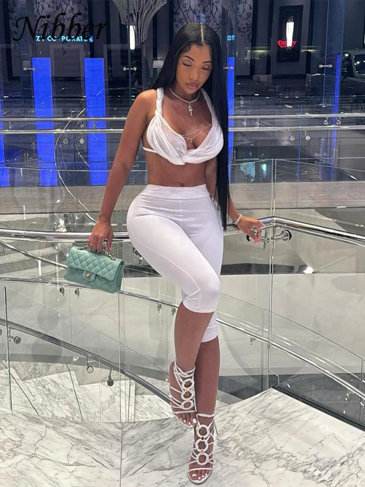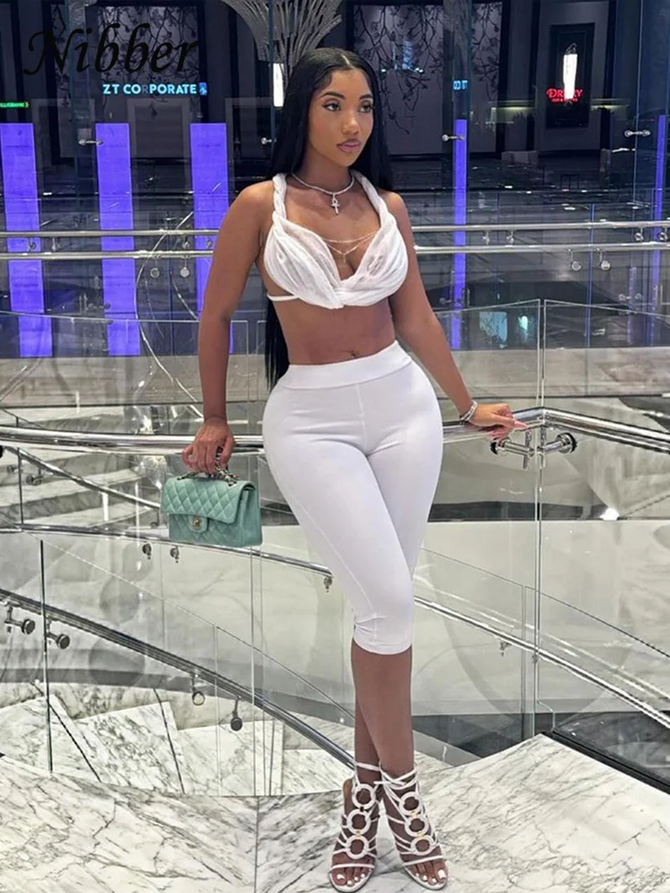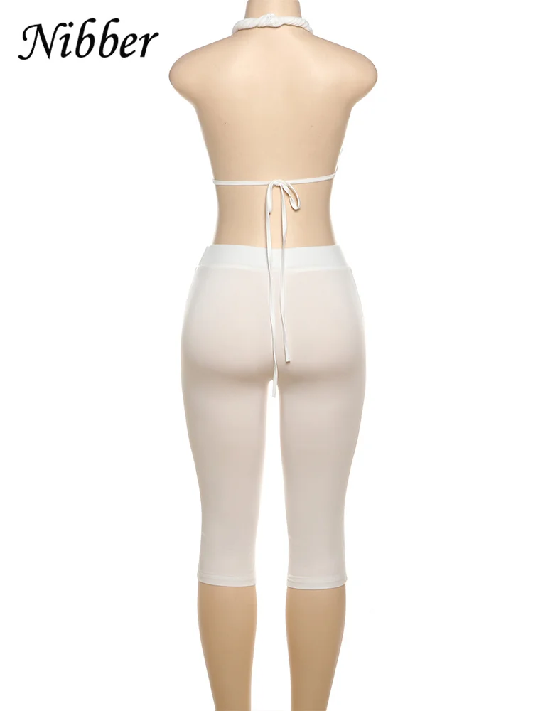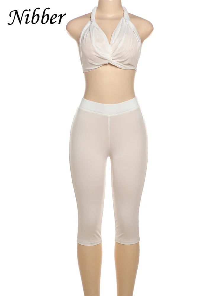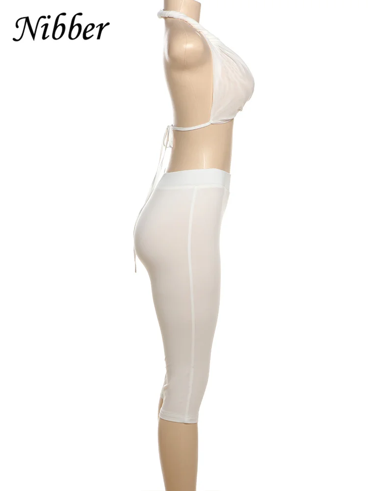 Nibber Sexy See Through Women 2 Piece Set Summer Trend Mesh Thin Whip Halter Tank Tops+Wide Waist Shorts Matching Street Outfits