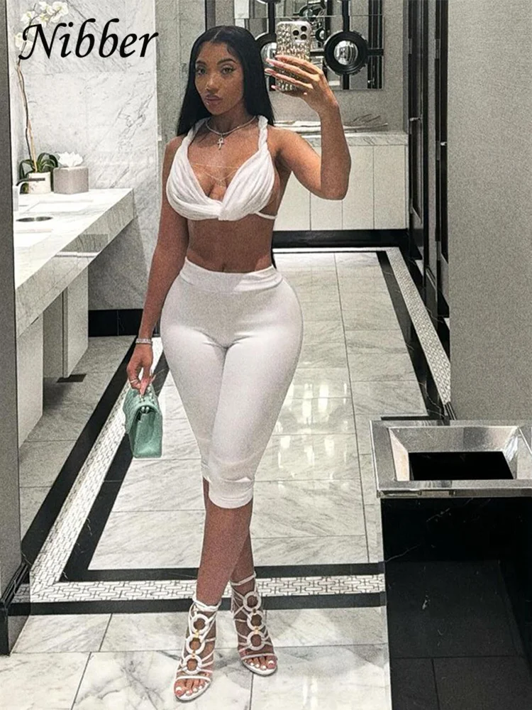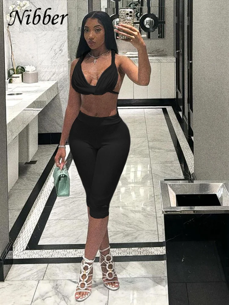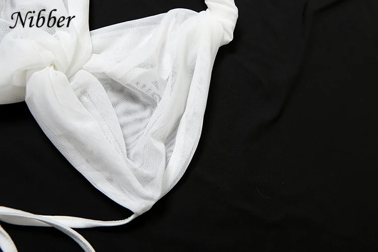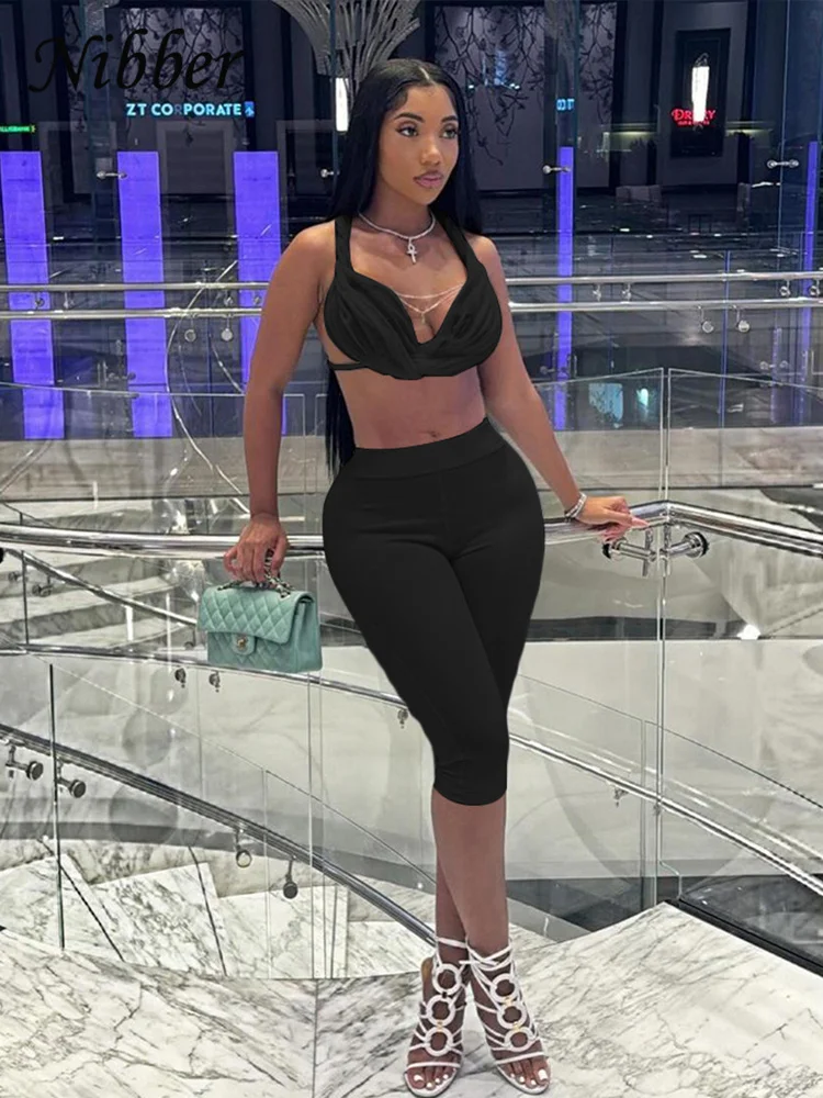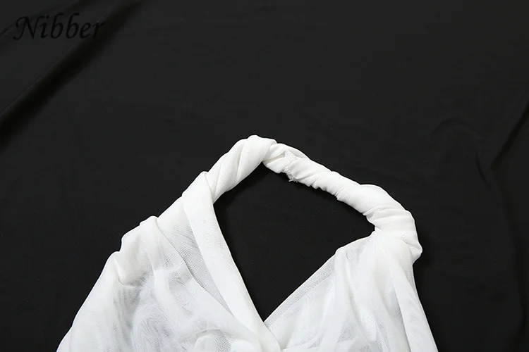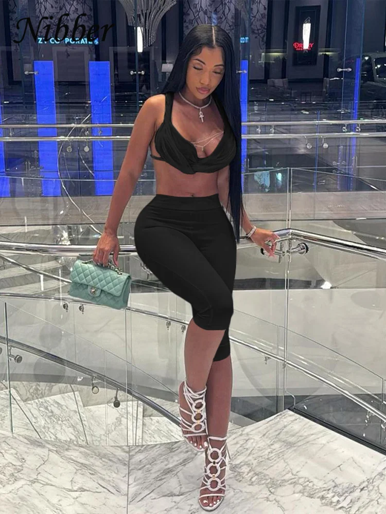 Nibber Sexy See Through Women 2 Piece Set Summer Trend Mesh Thin Whip Halter Tank Tops+Wide Waist Shorts Matching Street Outfits
