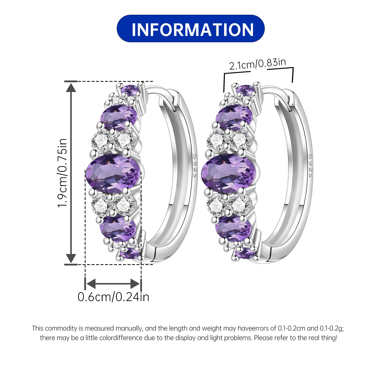 Original 925 Sterling Silver Minimal Exquisite Hoop Crystal Zirconia Earring For Women Anniversary WeddingMaking Jewelry Gifts