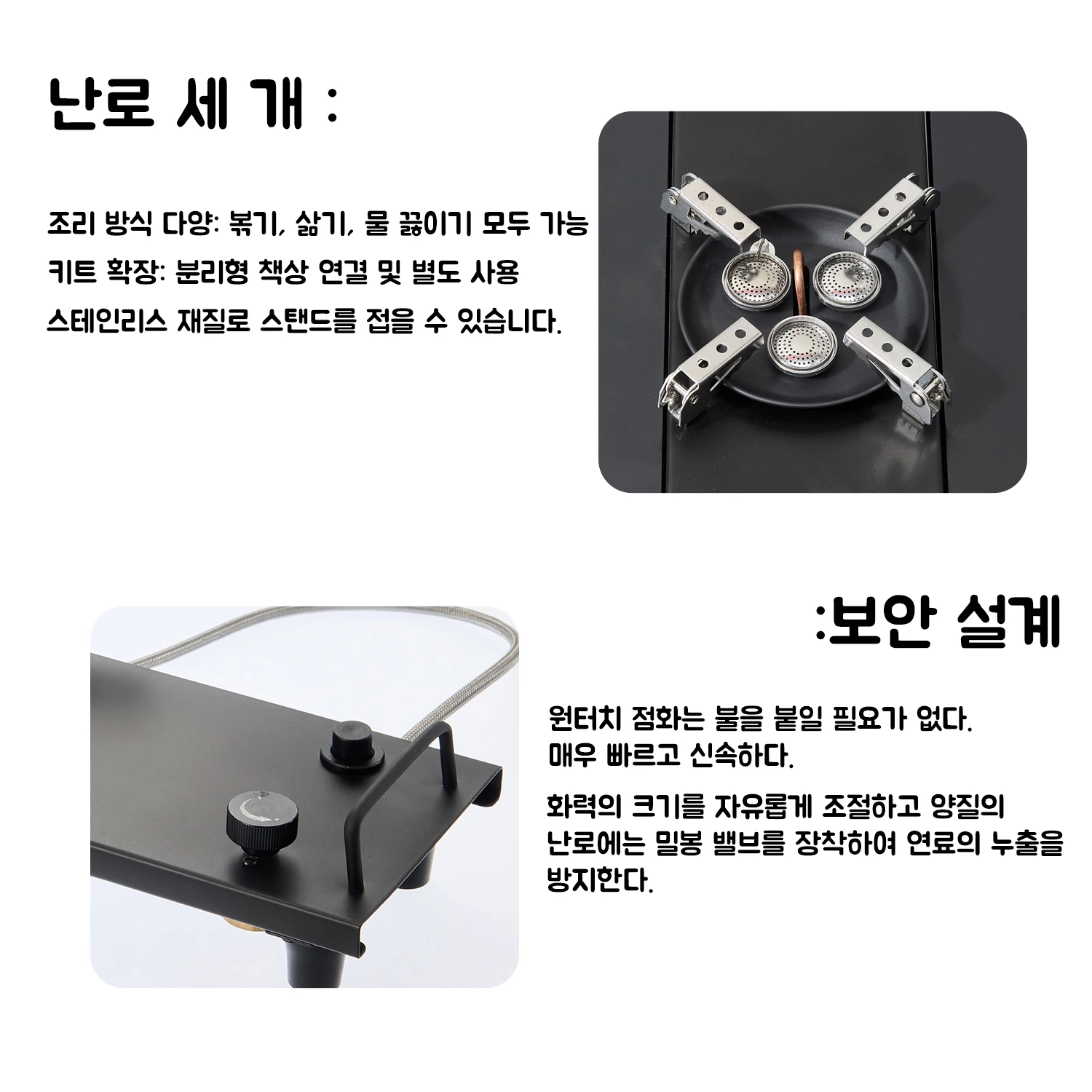 Features: Three burners require 120 seconds for 500ml of water to boil, while one burner requires 240 seconds