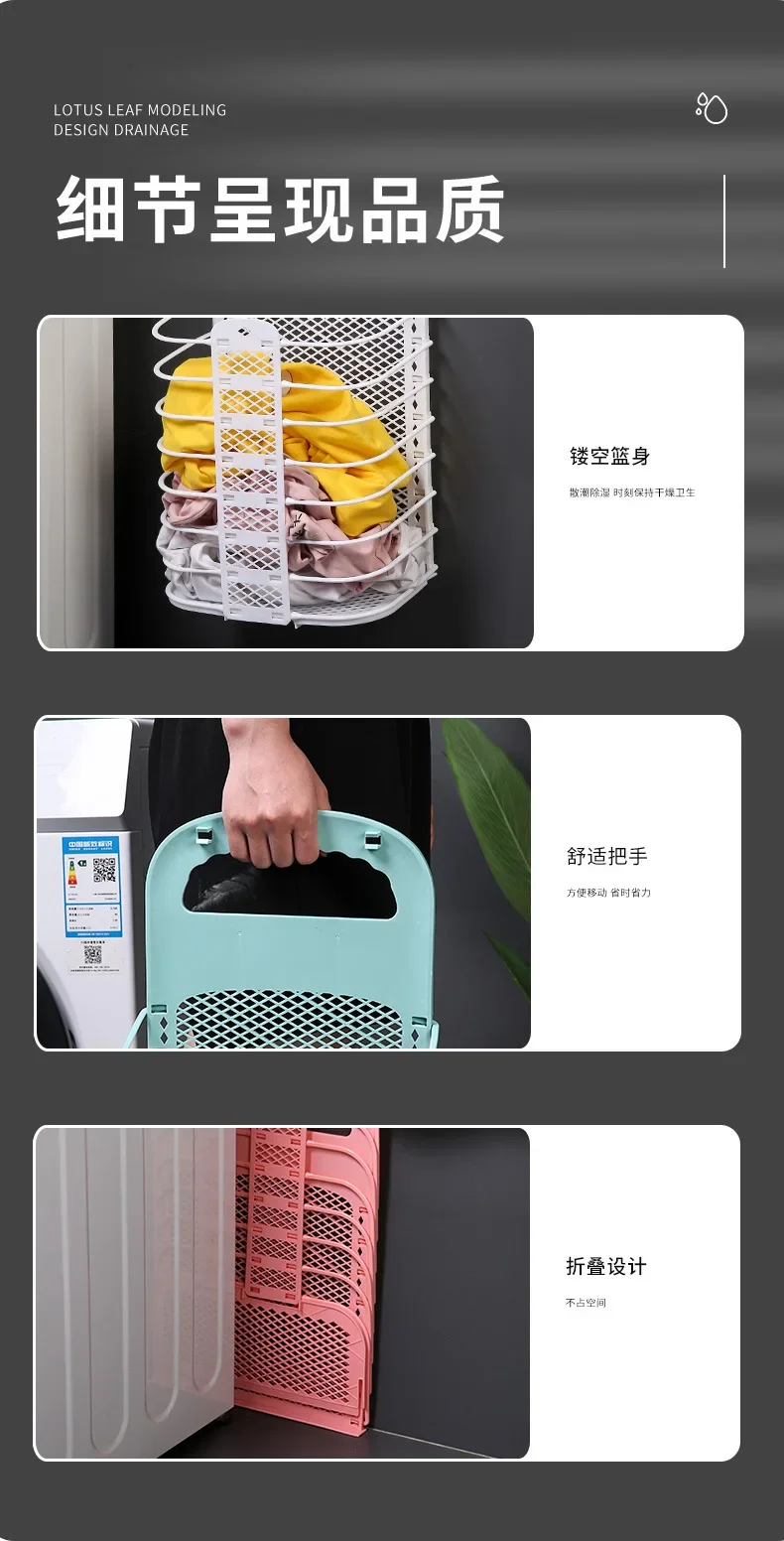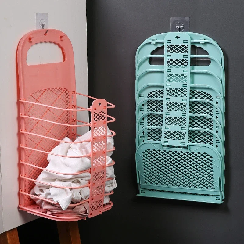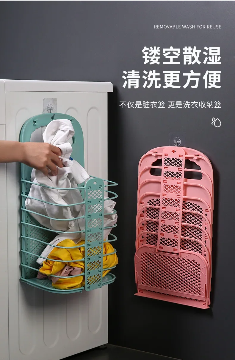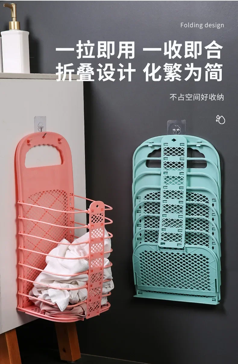 Plastic Storage Frame Foldable Dirty Clothes Basket Household Non Perforated Bathroom Wall Mounted Laundry Basket Clothes Basket