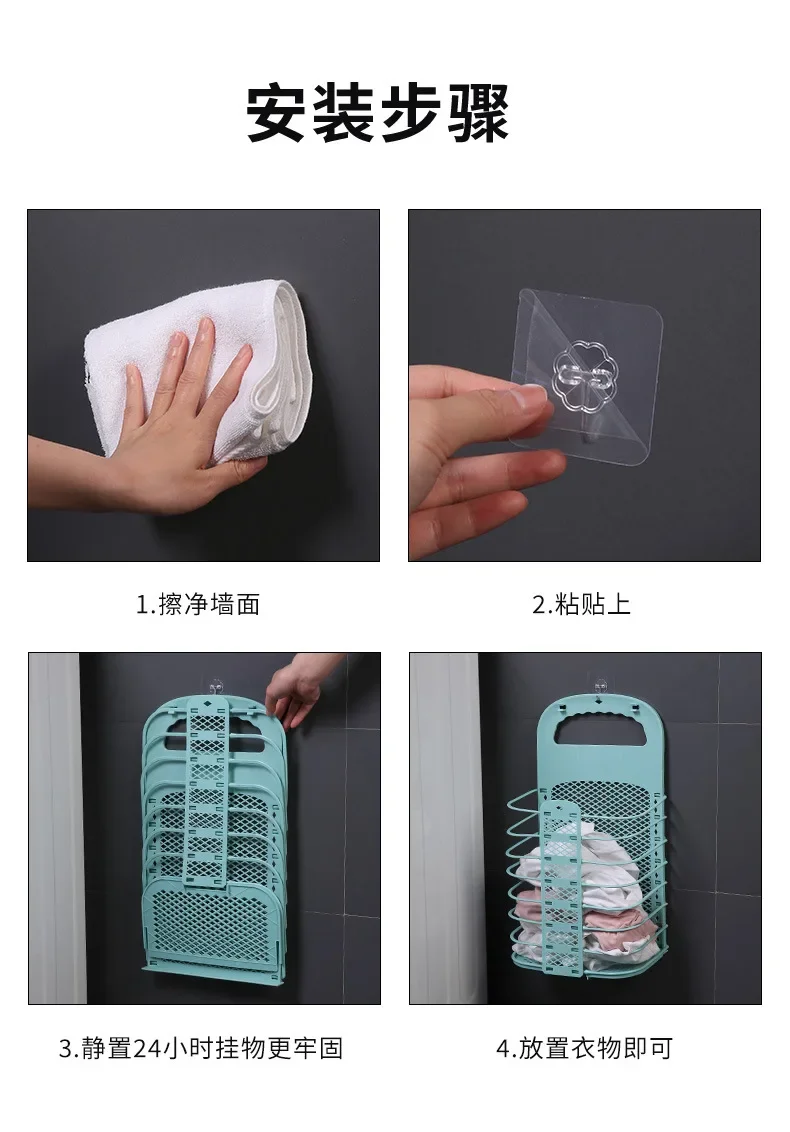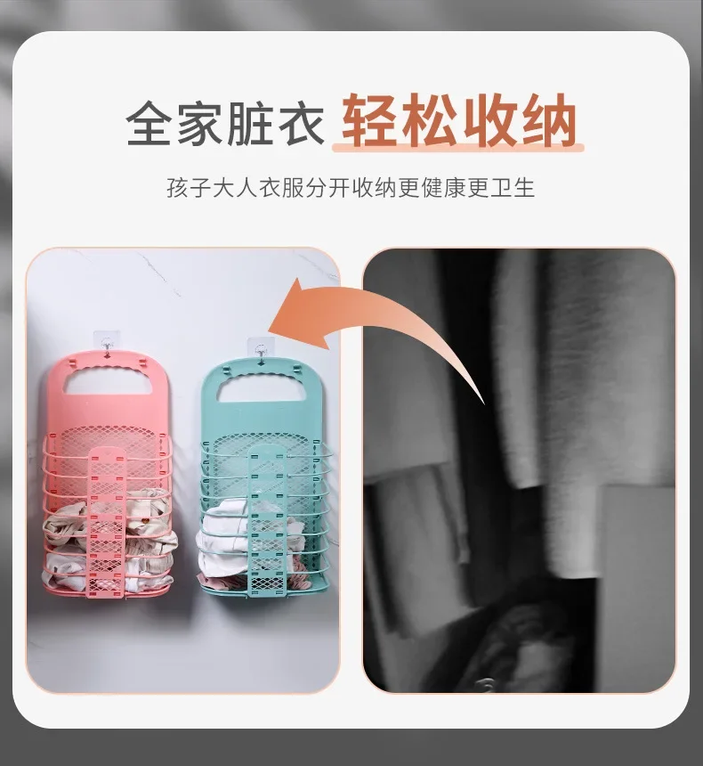 Wall-mounted dirty clothes basket, easy to install, can be hung and does not take up space.