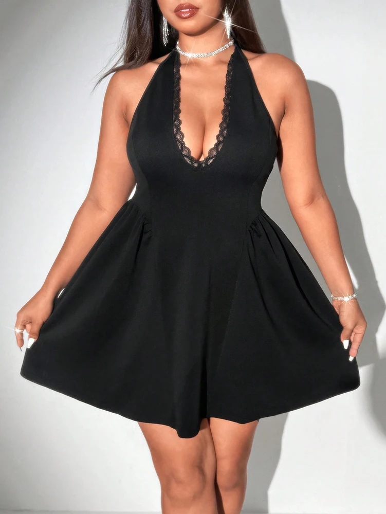 Plus Size Spring/Summer New Arrival Dress V-neck Sensual Lace-trimmed Sleeveless Puff-skirt Evening Gown Solid Colour